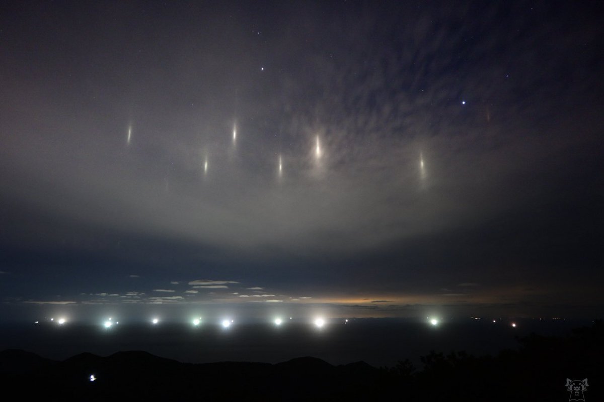 素晴らしい! 大気光学現象好きとしては1度は生で見てみたい現象✨ #漁火光柱 #大気光学現象 x.com/hibana_photo/s…