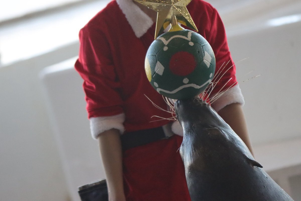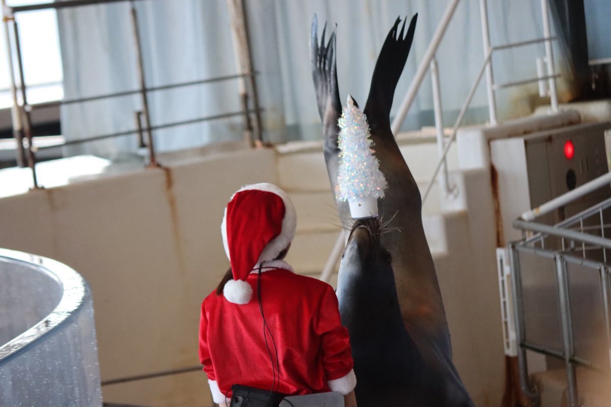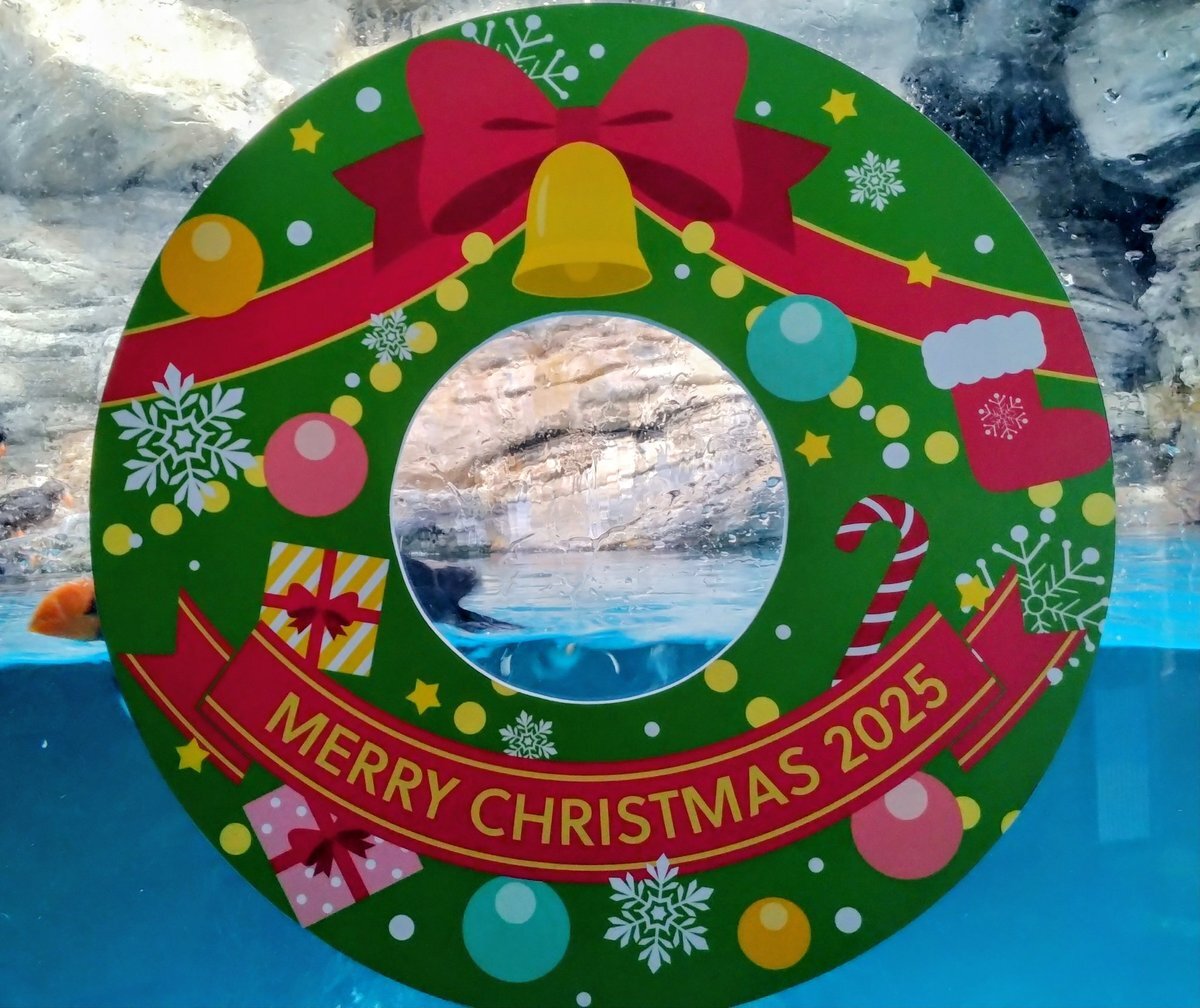 なかなかクリスマスリース🎄の中に入ってくれないエトピリカ😂 #アクアワールド #大洗水族館 pic.x.com/k0OBg0VPKF