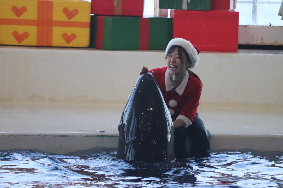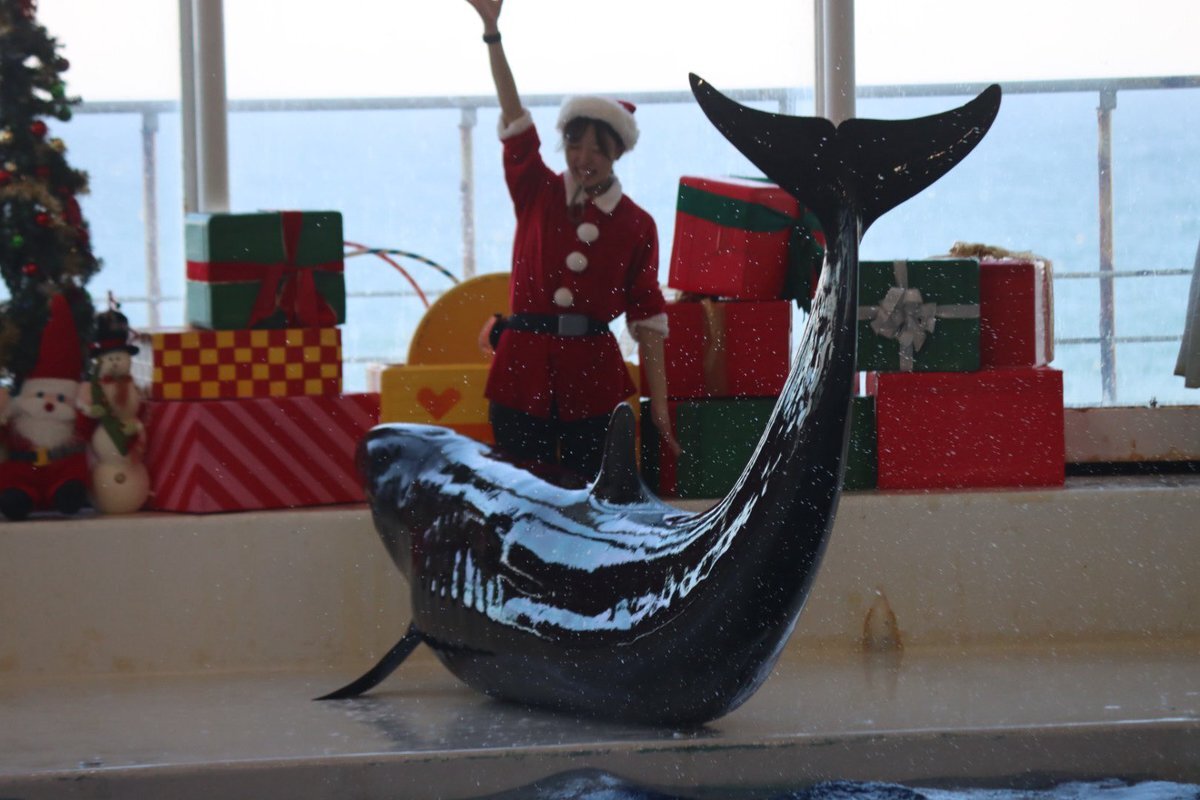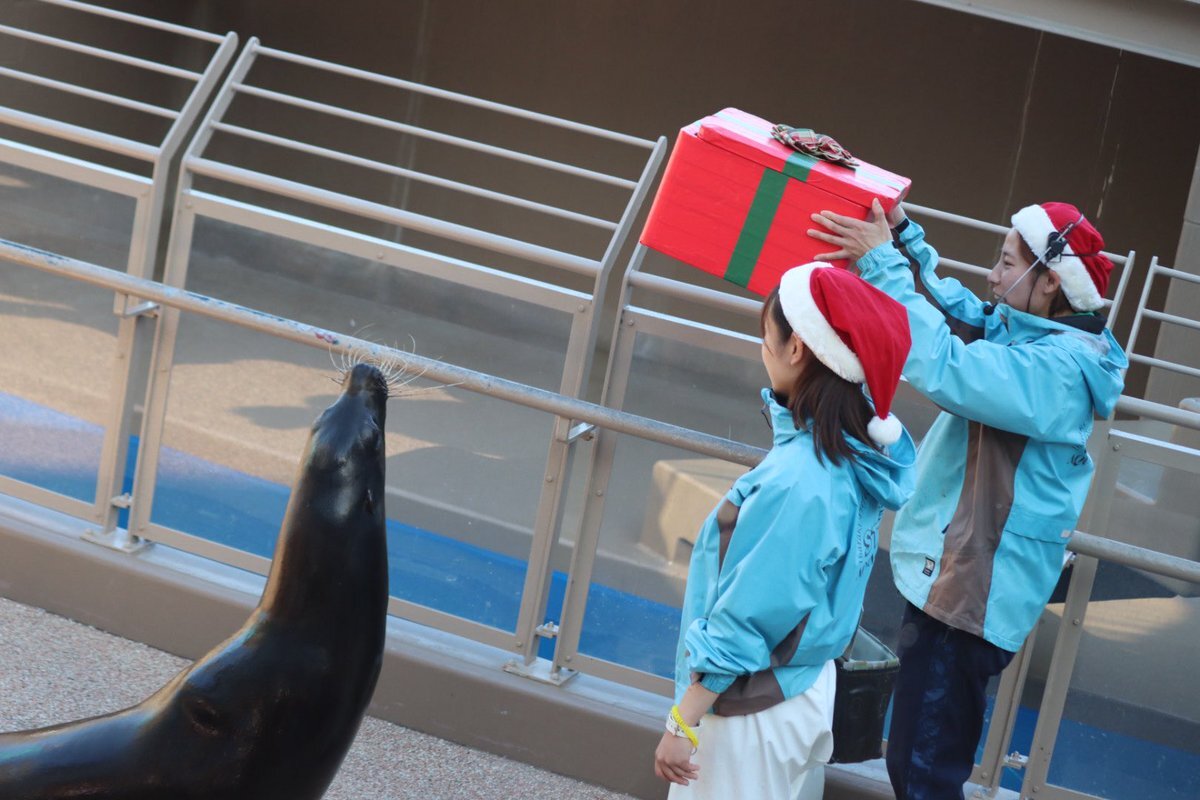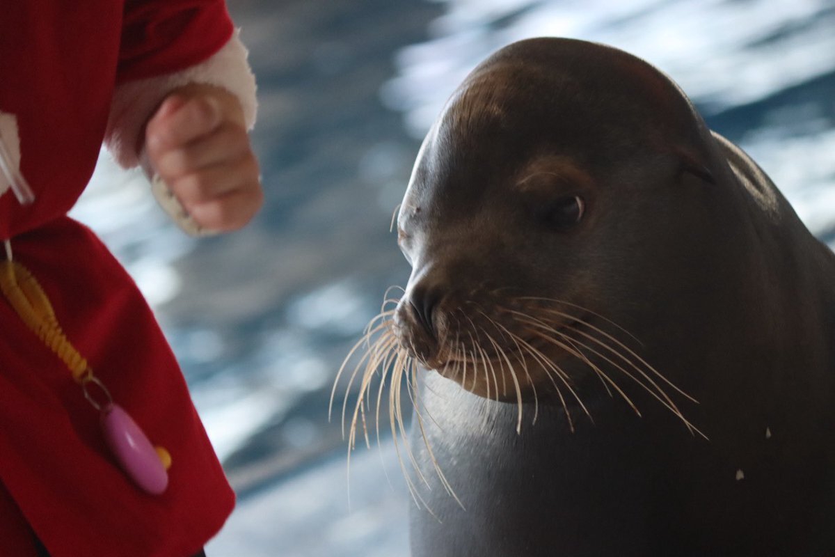 なかなかクリスマスリース🎄の中に入ってくれないエトピリカ😂 #アクアワールド #大洗水族館 pic.x.com/k0OBg0VPKF
