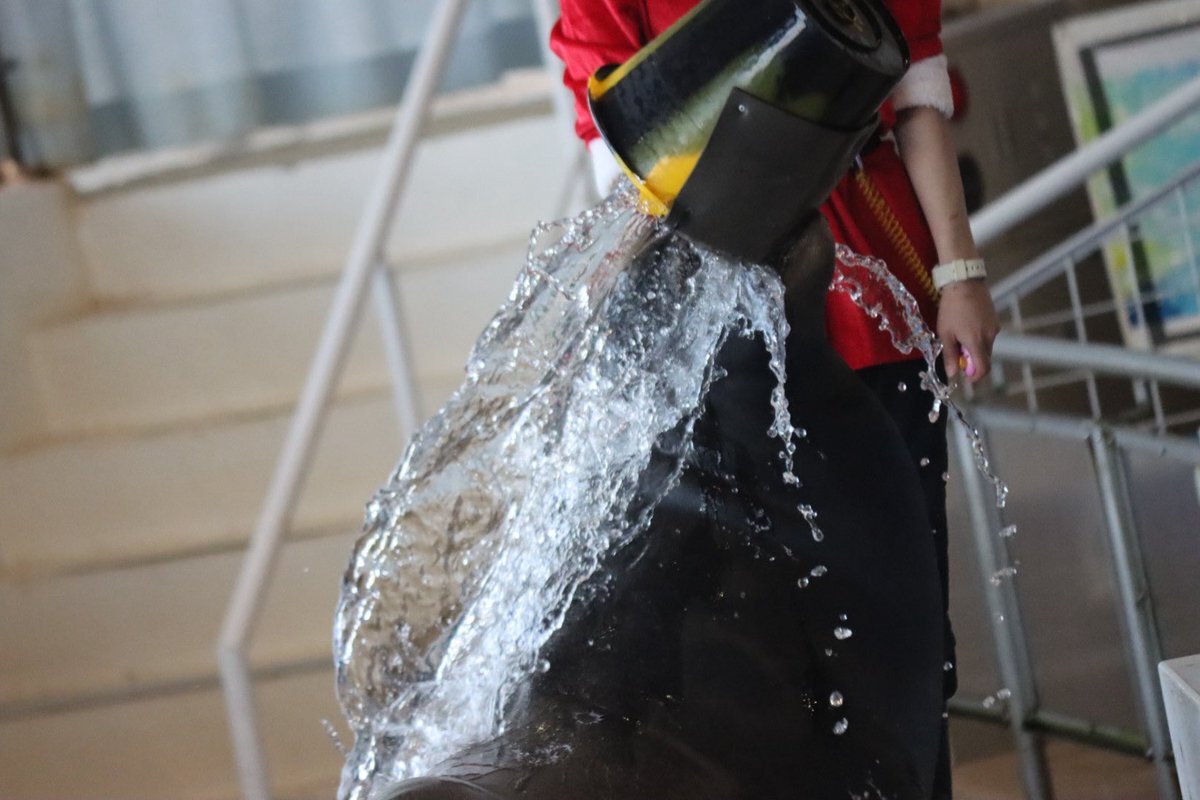 いずみ🩷 給餌中に荒ぶり初めた🤭 このままトレーナーさんに 付く事なく終了😅 #大洗水族館 #ゴマフアザラシ pic.x.com/vDwl88tfXb