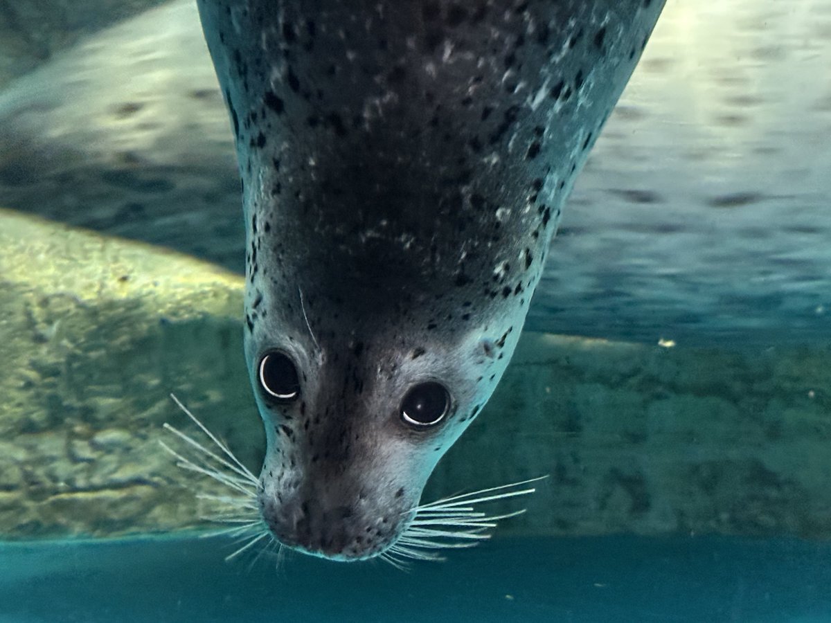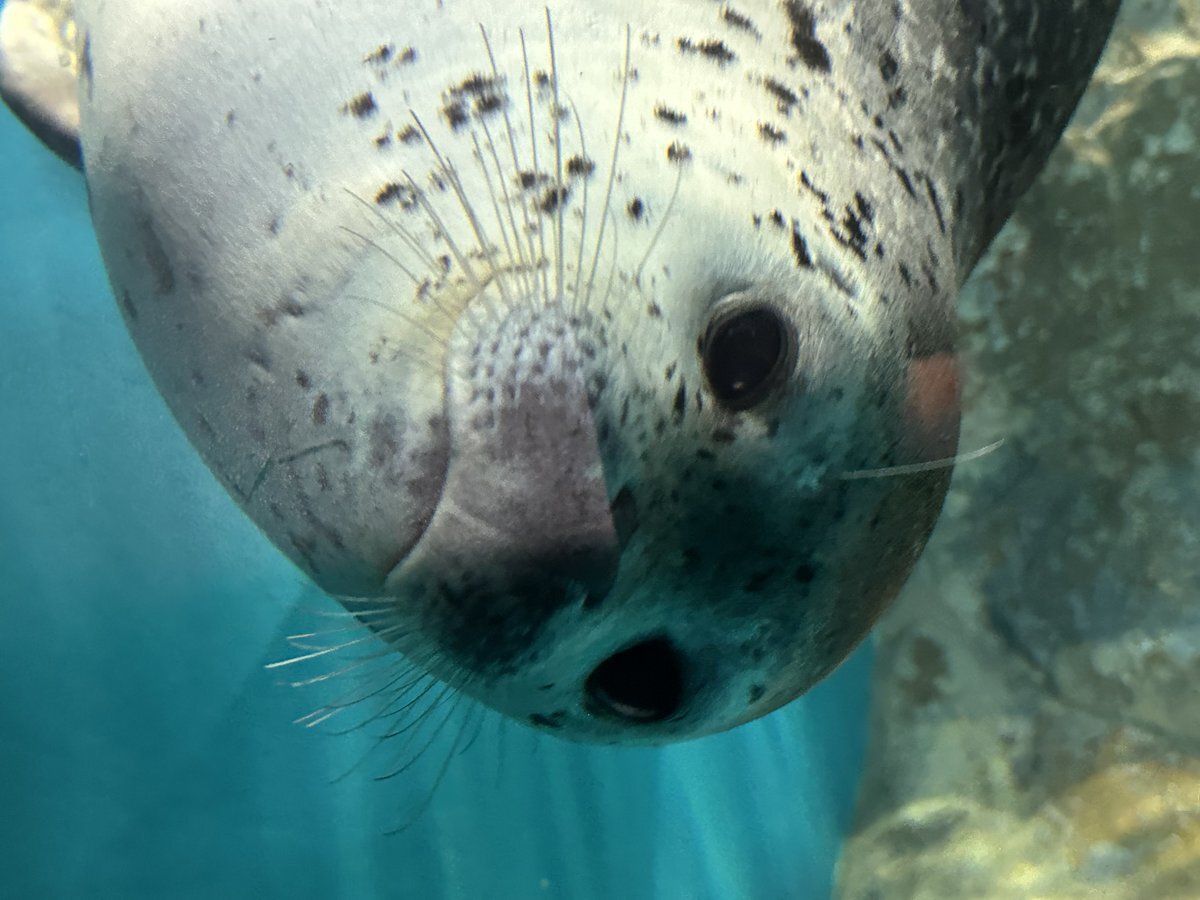 大洗水族館のゴマフアザラシの いずみ ちゃんです🦭 三津シーパラダイスから来てくれました。(ママは、ナナコです🦭) 好奇心旺盛で、元気に成長中です💕 #アザラシ #アクアワールド #大洗水族館 pic.x.com/Swu85vqybX