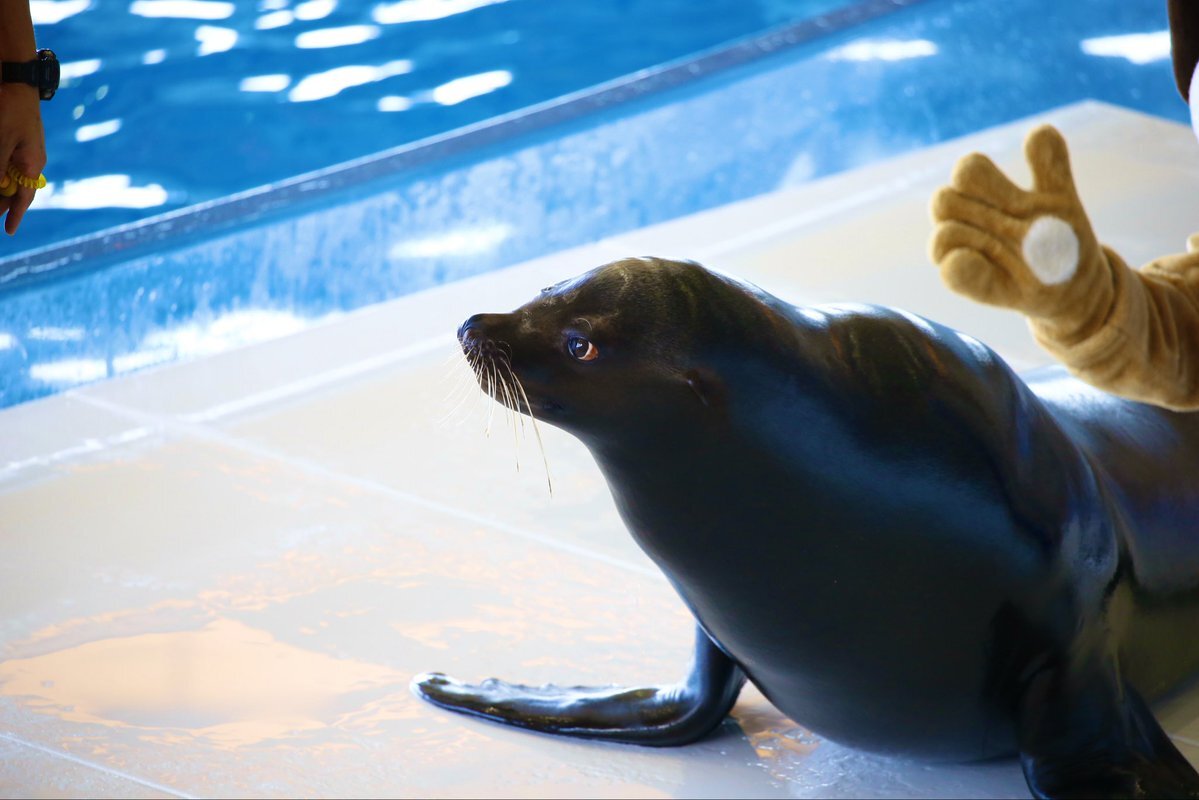アシカと握手会🤝 初めて参加した時もプリンちゃん だったんだけど握手してるとこ ちゃんと撮れなかったから プリンちゃんでリベンジ大成功🙌 プリン登場した瞬間のサーフが 大興奮で可愛かった🤣しばらく 騒いでいたサーフ😁 #大洗水族館 #カリフォルニアアシカ pic.x.com/VS3NdGMkzU