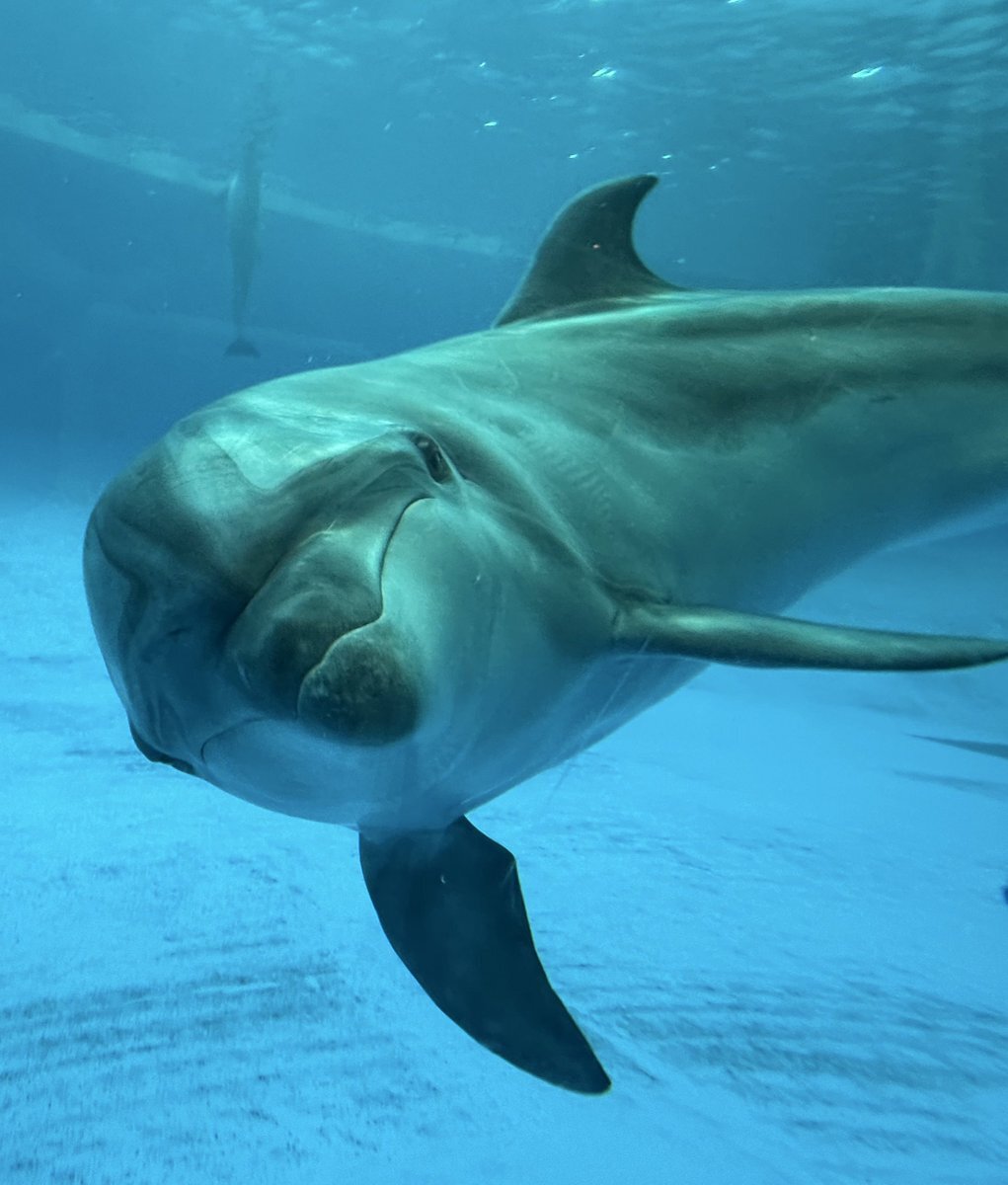 レイちゃん🩷   可愛かった〜 イルカ達の名前と識別を トレーナーさんに聞いてお勉強中📝 #大洗水族館 #バンドウイルカ pic.x.com/i1bGIqfBkm