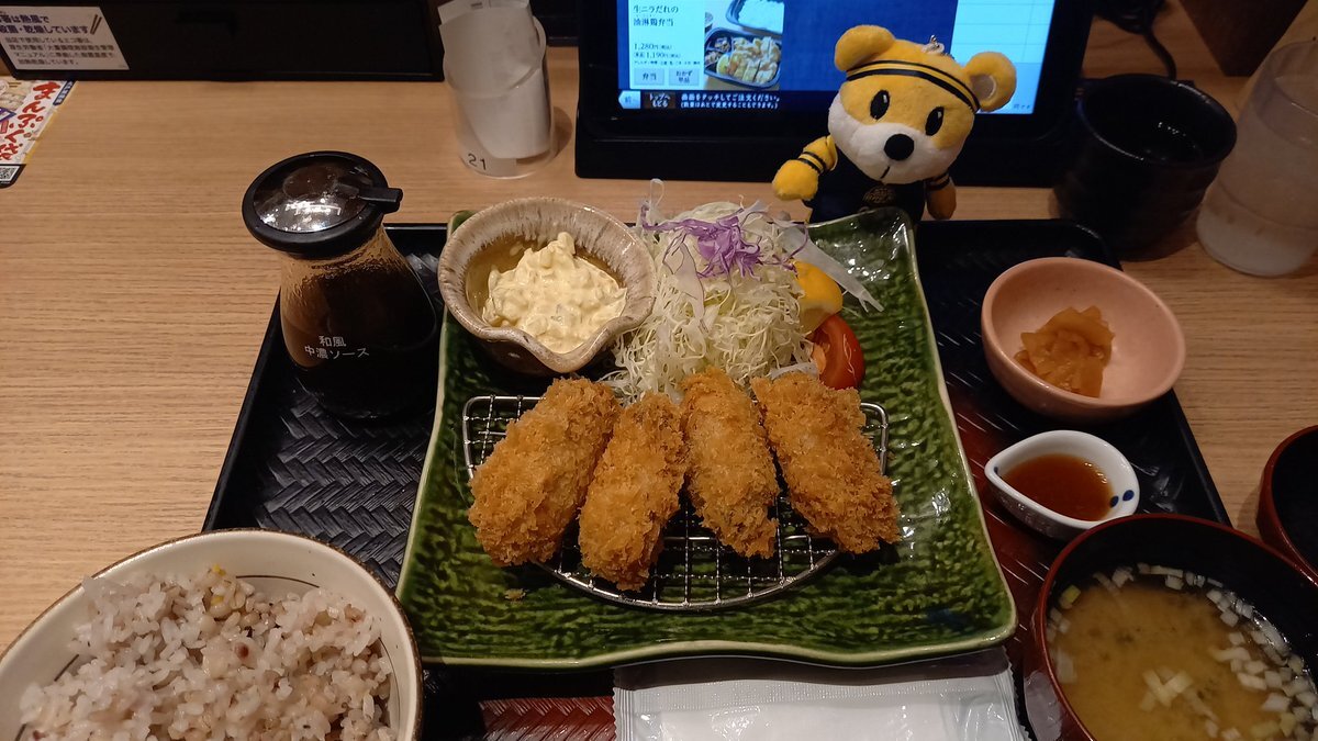 ブレックス、今日も勝てよ~‼️ そんな訳で、大戸屋さんに、カキフライ食べに来ちゃったよ‼️ なんと広島県産カキじゃないの。 美味しく頂いてるので、ブレックス勝てるゾ…勝手な暗示です。 #大戸屋 #大粒牡蠣フライ #宇都宮ブレックス pic.x.com/v85jT2TJCp