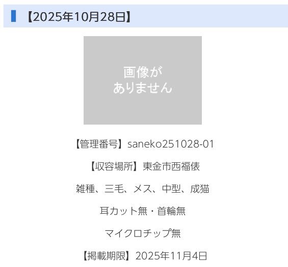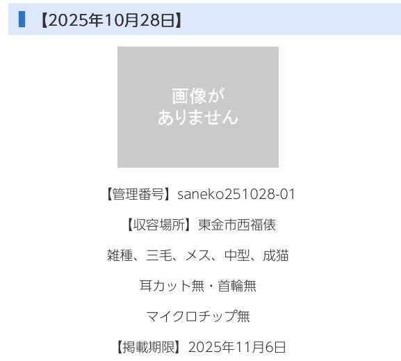 🆘緊急🆘#収容猫 🆘掲載期限11/6(木)* 10/28(火)#千葉県 #東金市 #西福俵 ♀#三毛猫 📲千葉県動物愛護センター🙇🏻‍♂️ #迷い猫 #迷子猫 #保護猫 #猫 #ネコ #ねこ #cat #三毛 #ミケ #サビ猫 #九十九里町 #山武市 #八街市 #千葉市 #茂原市 #白子町 #大網白里市 #季美の森 #大網 #福俵 #八鶴湖 #サンピア #東金 x.com/fukushiyamesag…