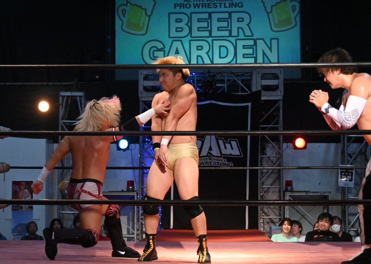凄いカードばかりならぶ大会のオープニングマッチ!のっけからトマトダンスに負けじとノリノリで盛り上げてくぜ!!ホフ!!! #大谷譲二10周年記念興行 #チケット予約受付中 x.com/george_age/sta…