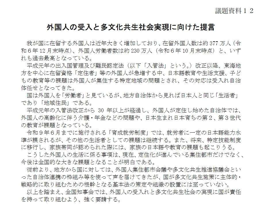 #全国の知事は日本人の敵 全国知事会 令和7年7月23日・24日開催会資料 議題資料12 外国人の受入と多文化共生社会実現に向けた提言 nga.gr.jp/conference/ite… #大量移民は日本を侵略する政治的兵器 #大量移民は日本侵略兵器 #移民政策反対 x.com/mattariver2/st…