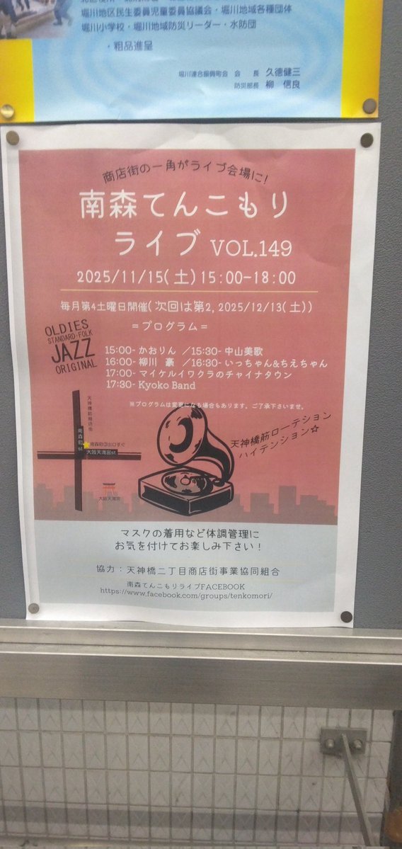 11/15(土)15:00~18:00 南森てんこもりライブ 南森町③出口すぐ #大阪商店街巡り #南森町 pic.x.com/rSHFxUkWvH