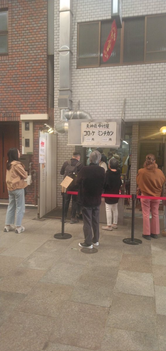 天神橋中村屋 コロッケ、ミンチカツを求めて大行列です。 #大阪商店街巡り #南森町 pic.x.com/rvYQ4GoTs7