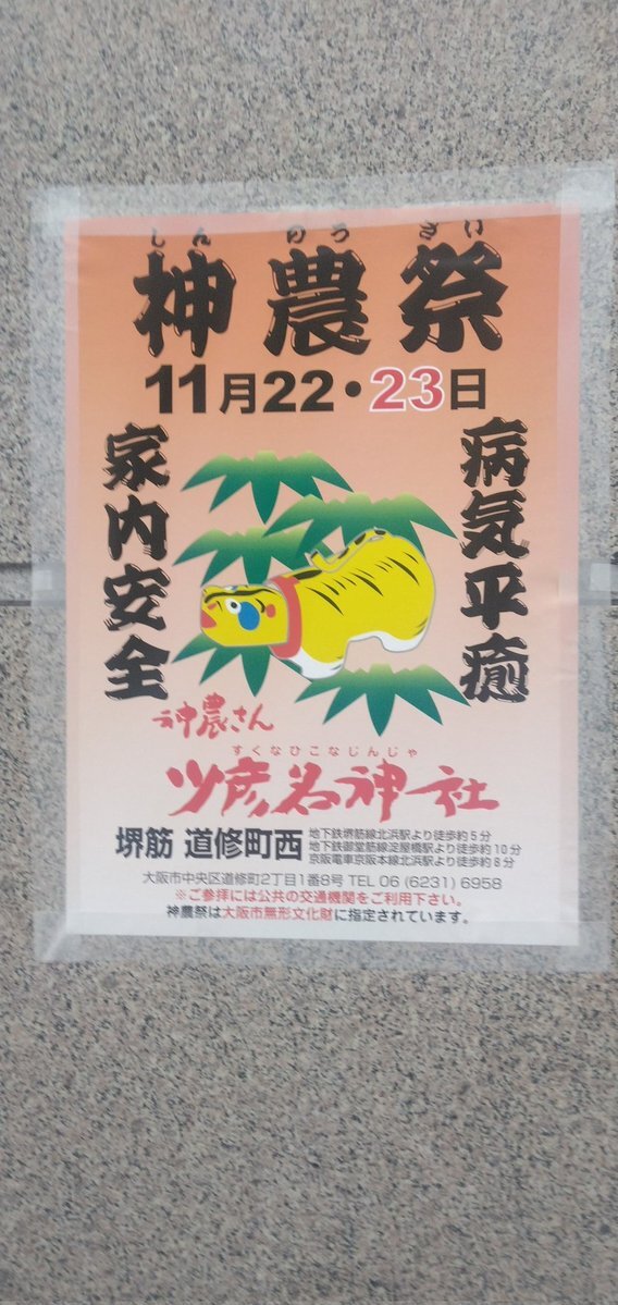 11/22(土)~11/23(日) 神農祭 少彦名神社 #大阪商店街巡り #淀屋橋 pic.x.com/kqN7tycwF8