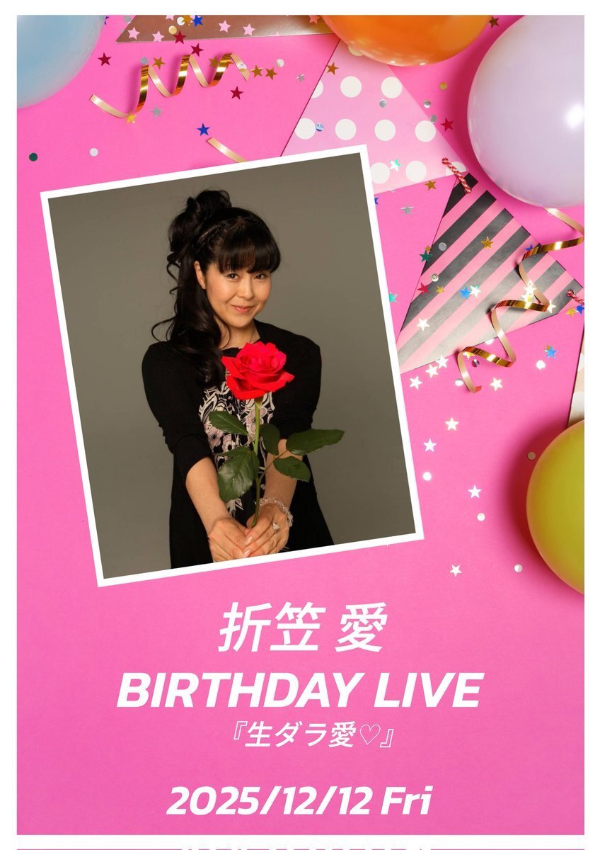 折笠愛 様バースデーライブ 『生ダラ愛♡』開催〜㊗️🎉 2025年12月12日 (金) 音部屋スクエア 🎁おもちゃ箱🎁 14:00開演 💎宝石箱💎    19:00開演 ⭐️チケット販売 11/15(土)12:00〜 (チケット発売専用HP公開 11月13(木)12:00〜) #折笠愛 #ロミオの青い空 #ガンダムW #天地無用 #サクラ大戦 x.com/AIaxlone/statu…