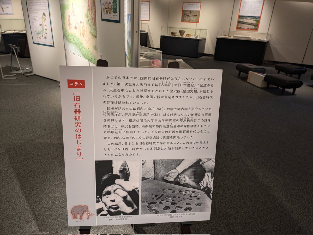 平城宮跡資料館 「ナラから平城―旧石器からはじまる3万年の歴史」 相沢忠洋、高校で習って以来。 ゴジラかキングコングでてきそうなイラスト。 #奈良文化財研究所 pic.x.com/vMA23s87in
