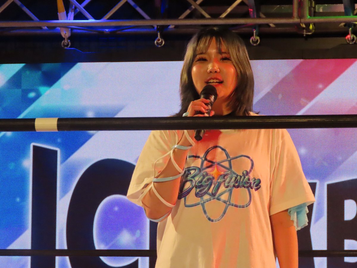 10.25アイスリボンハムカツ生誕祭 オープニング挨拶兼前説を行うプロデューサーの #勝愛実 選手と #星ハム子 選手 #iceribbon #女子プロレスラー #はっぴぃかめら pic.x.com/RxQcWwGw4n