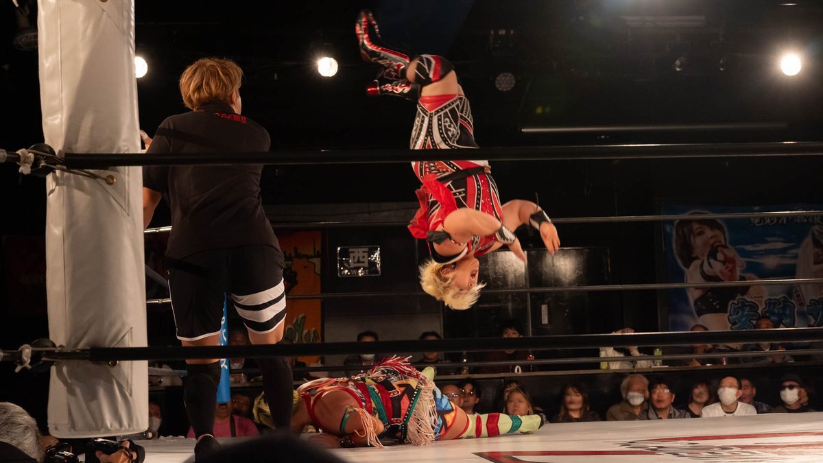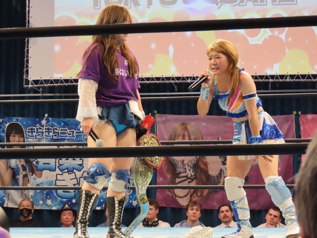 10.25アイスリボンハムカツ生誕祭メインイベント。 試合後「きらりの限界突破見届けろ~!」を一緒に行う #勝愛実 選手と #若菜きらり 選手。 今週末はきらり選手の生誕祭興行開催。 #iceribbon #女子プロレスラー #はっぴぃかめら pic.x.com/KjdbIfLTQu