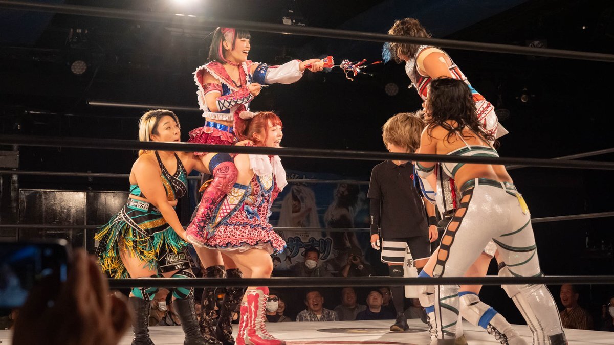 10.25アイスリボンハムカツ生誕祭第1試合 #しのせ愛梨紗 選手、#海乃月雫 選手、「小物X」=#緋彩ませ 選手リングイン。 #iceribbon #prhot #飛鳥プロレス #女子プロレスラー #はっぴぃかめら pic.x.com/nwget5J3Dx