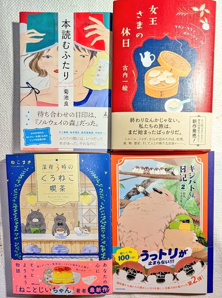 読みたいのに…😪😪😪😪 一時的に積読本。 マカンマランの新作が愉しみなんだが~マジ眠い😴😴😴 #本読むふたり #菊池良 著 #女王さまの休日 #マカンマランボャージュ #古内一絵 著 #深夜3時のくろねこ喫茶 #ねこまき 著 #キジバトくん日記2 #初丸うげべそ 著 pic.x.com/tdQMXUsO9s