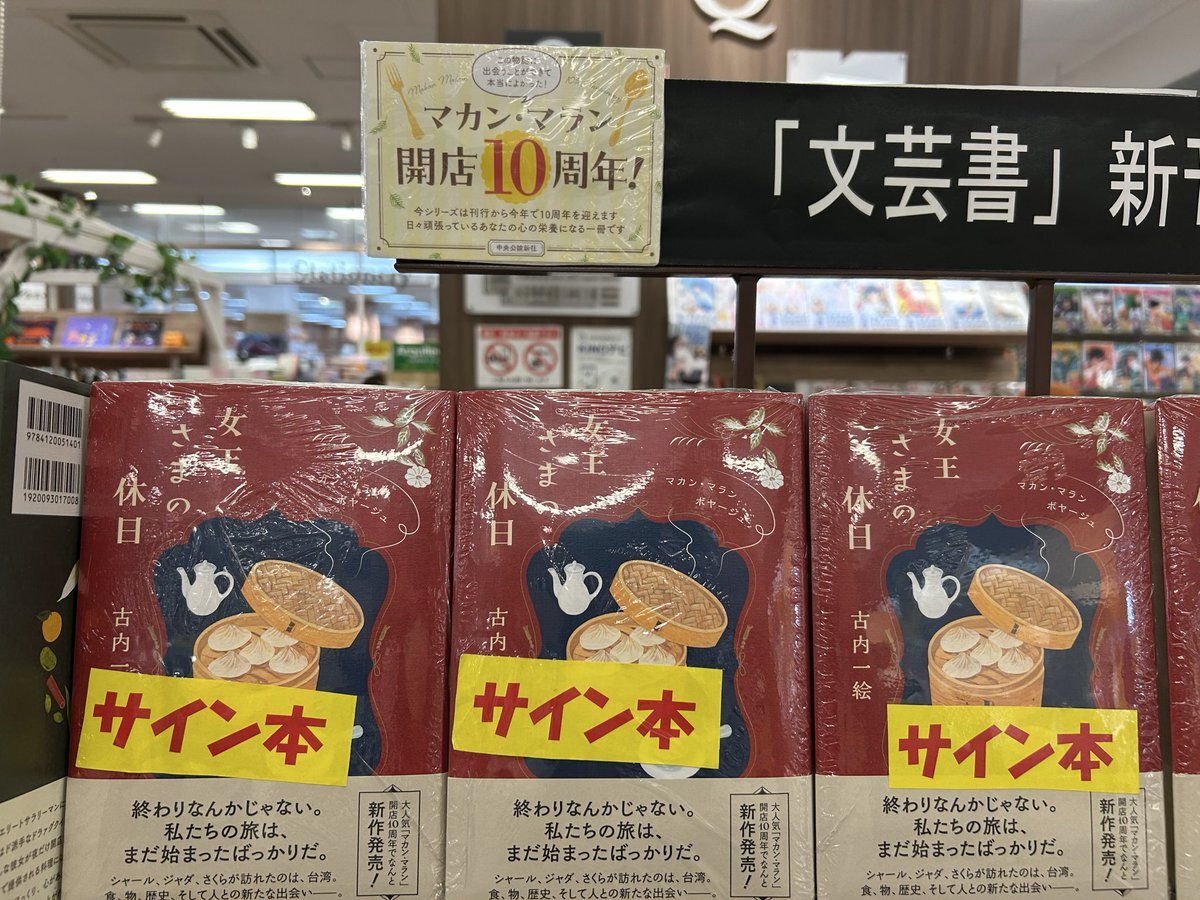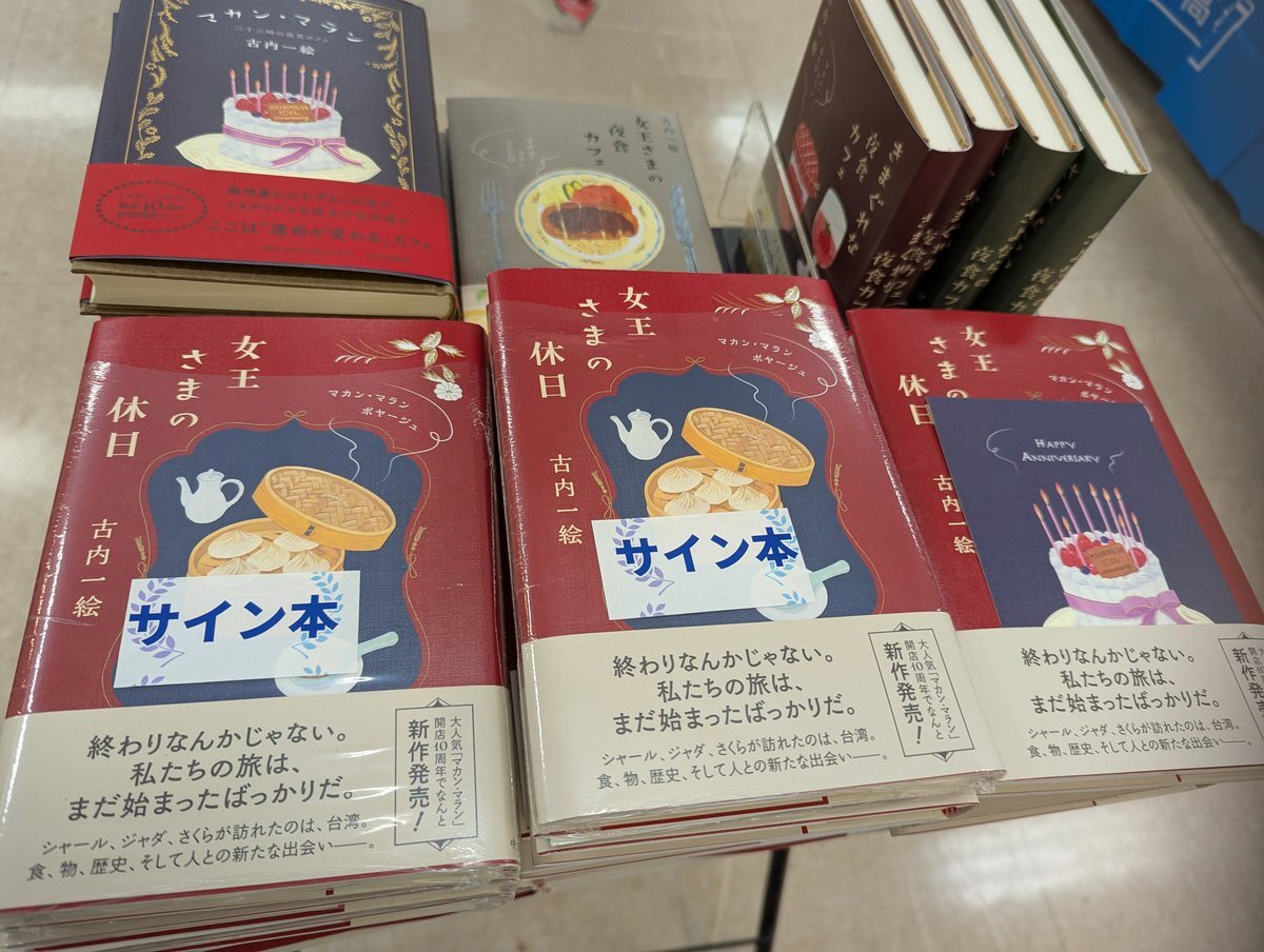 今日は素敵な新刊のサイン本もりもりに入りました!人気シリーズ #マカンマラン の #女王さまの休日 #古内一絵 と #町田そのこ #彼女たちは楽園で遊ぶ ともに #中央公論新社 からの10月最新刊です♪ かずにかぎりあり! pic.x.com/jpkux3O6aA