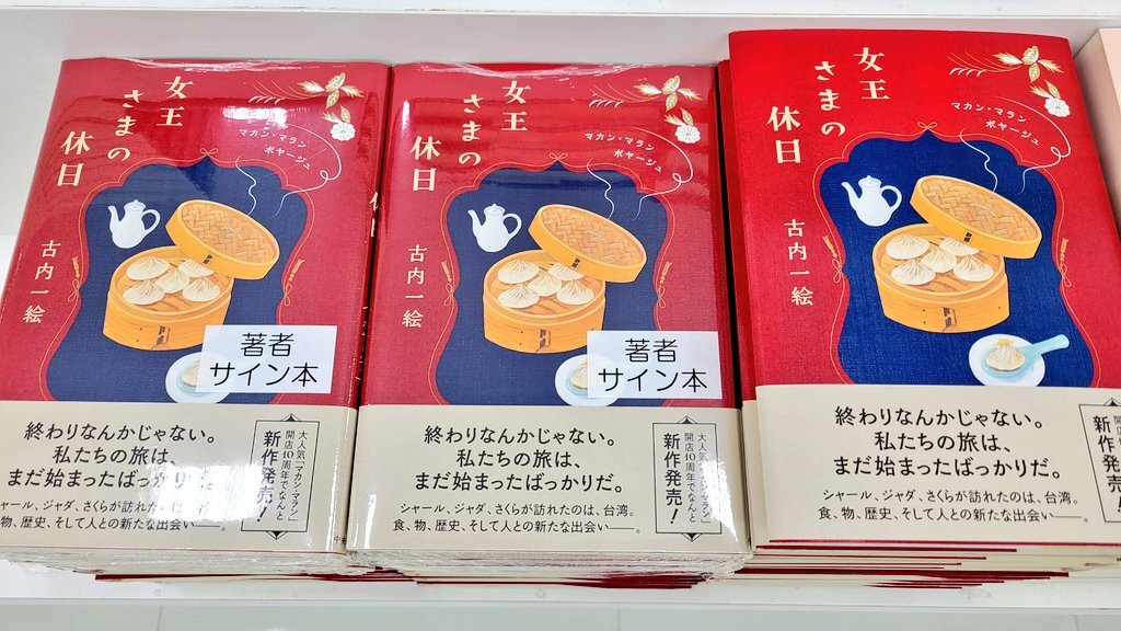 #古内一絵 さん最新作 『#女王さまの休日 マカン・マランボヤージュ』 サイン本が入荷しました! シャール、ジャダ、さくらが訪れたのは、台湾。 食、物、歴史、そして人との新たな出会い! サイン本は数に限りがございますので、お早めにお買い求め下さい♪ #中央公論新社 #エムズエクスポ盛岡店 pic.x.com/kgVSyokur1