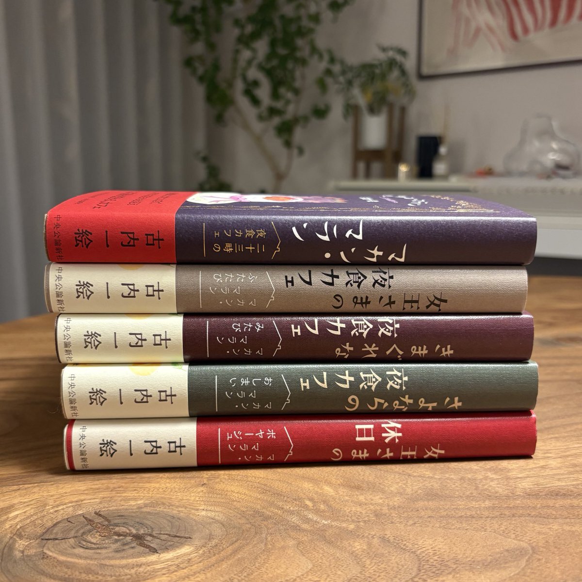 #女王さまの休日 マカン・マラン ボヤージュ #古内一絵 |中央公論新社 本当に楽しみにしていた一冊は期待通り最高でした💓懐かしの登場人物の様子も知れたし,本当に心潤う癒しの一冊😊終活でもう本は増やさないと思ってたけどやっぱりシリーズ全部手元に置きたいなぁ💕 chuko.co.jp/tanko/2025/10/…