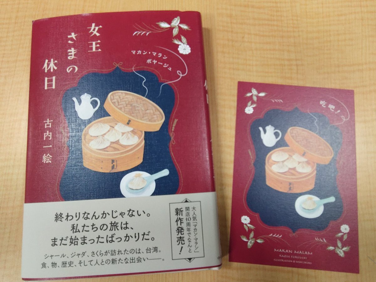 【2階文芸】 とびきり美味しいごはんと、癒しの物語を──。「マカン・マラン」のみんなが帰ってきました♪ #古内一絵 「#女王さまの休日 マカン・マラン ボヤージュ」 シャールさんたちは今回マカン・マランを飛び出して台湾へ!歴史と人に想いを馳せる素敵なシリーズ最新作。A-25の棚にて(YH) pic.x.com/OJMn0u6URp