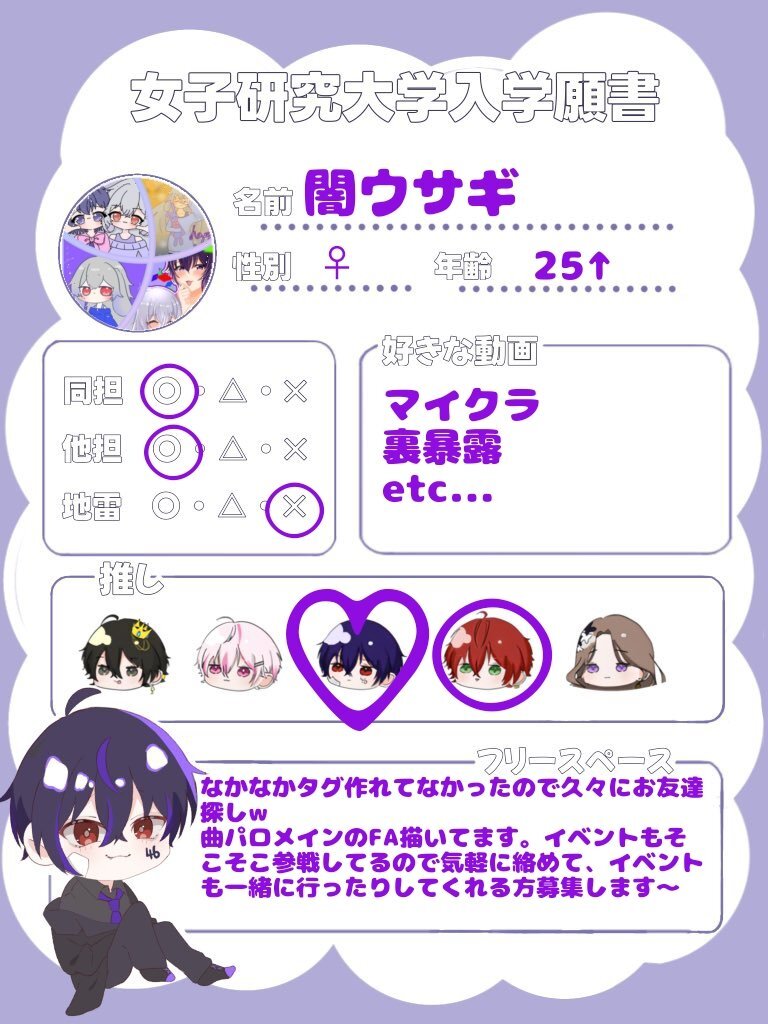 全然タグをしてなかったのとファンミがあるので久々に🏷𓈒𓏸︎ ️👾最推し、イベントも参戦し、曲パロメインのFA描いてます。(一部ALTへ) 片思い3日まで 全反応気になる方お迎え行きますのでよろしくお願いします🙏🏻 #女子研究大学 #女研リスナーさんと繋がりたい pic.x.com/70wb44iy2Y