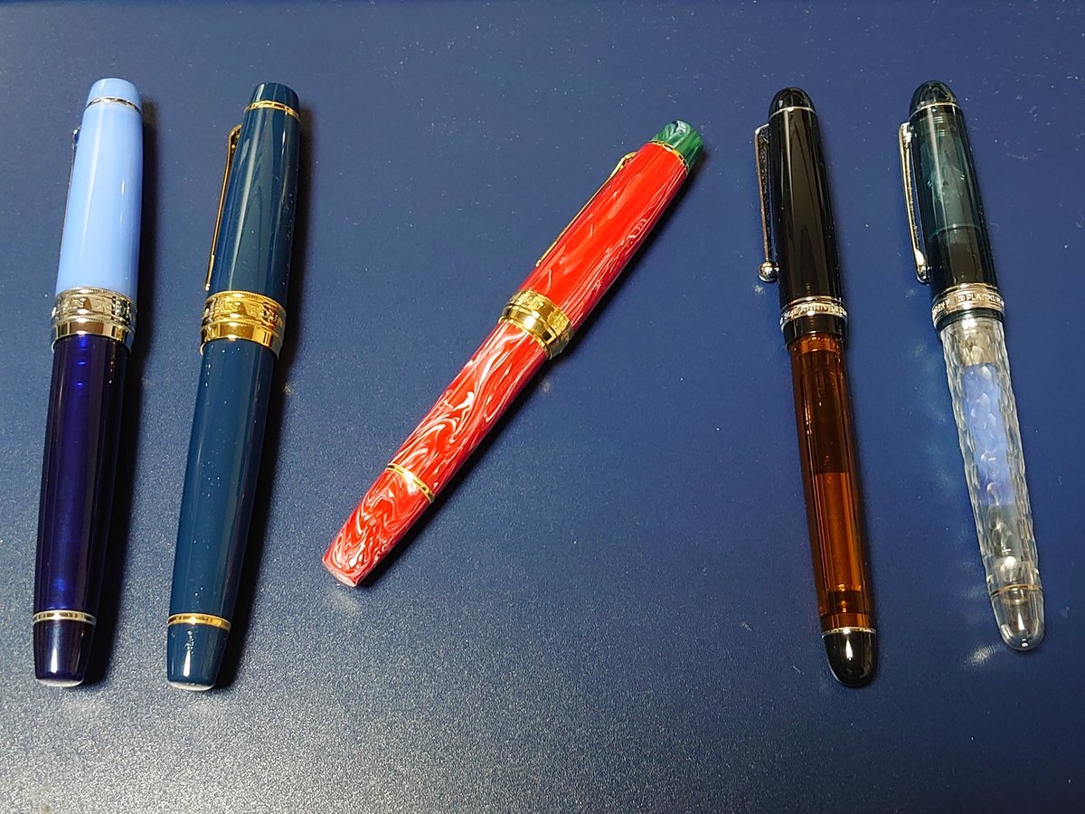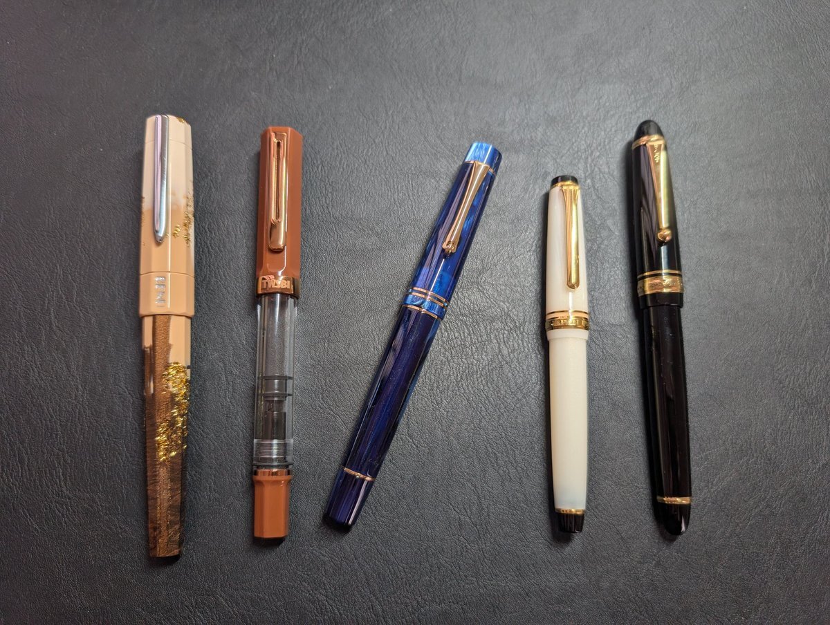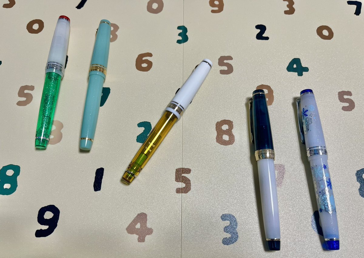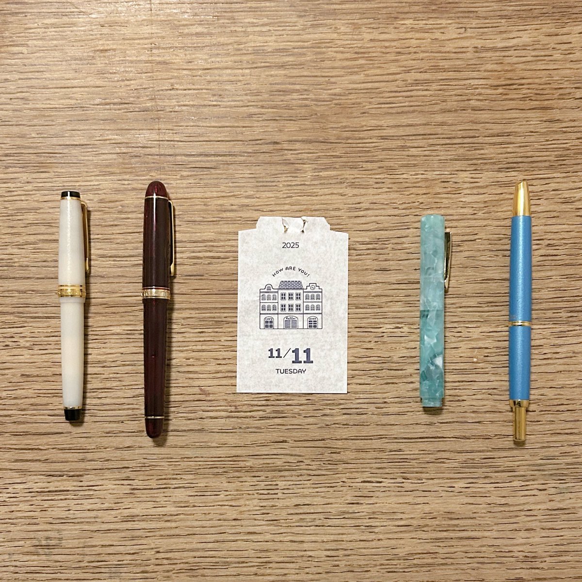 #好きな万年筆で11月11日を作る 滑りこみ! 左から ペリカン:スーベレーンM405 セーラー:プロギアスリム かぐや姫 セーラー:プロギアスリムミニ the witch プラチナ:センチュリー WAGNER 2025 Azure Dragon パイロット:CUSTOM URUSHI pic.x.com/zQytqqbdFZ