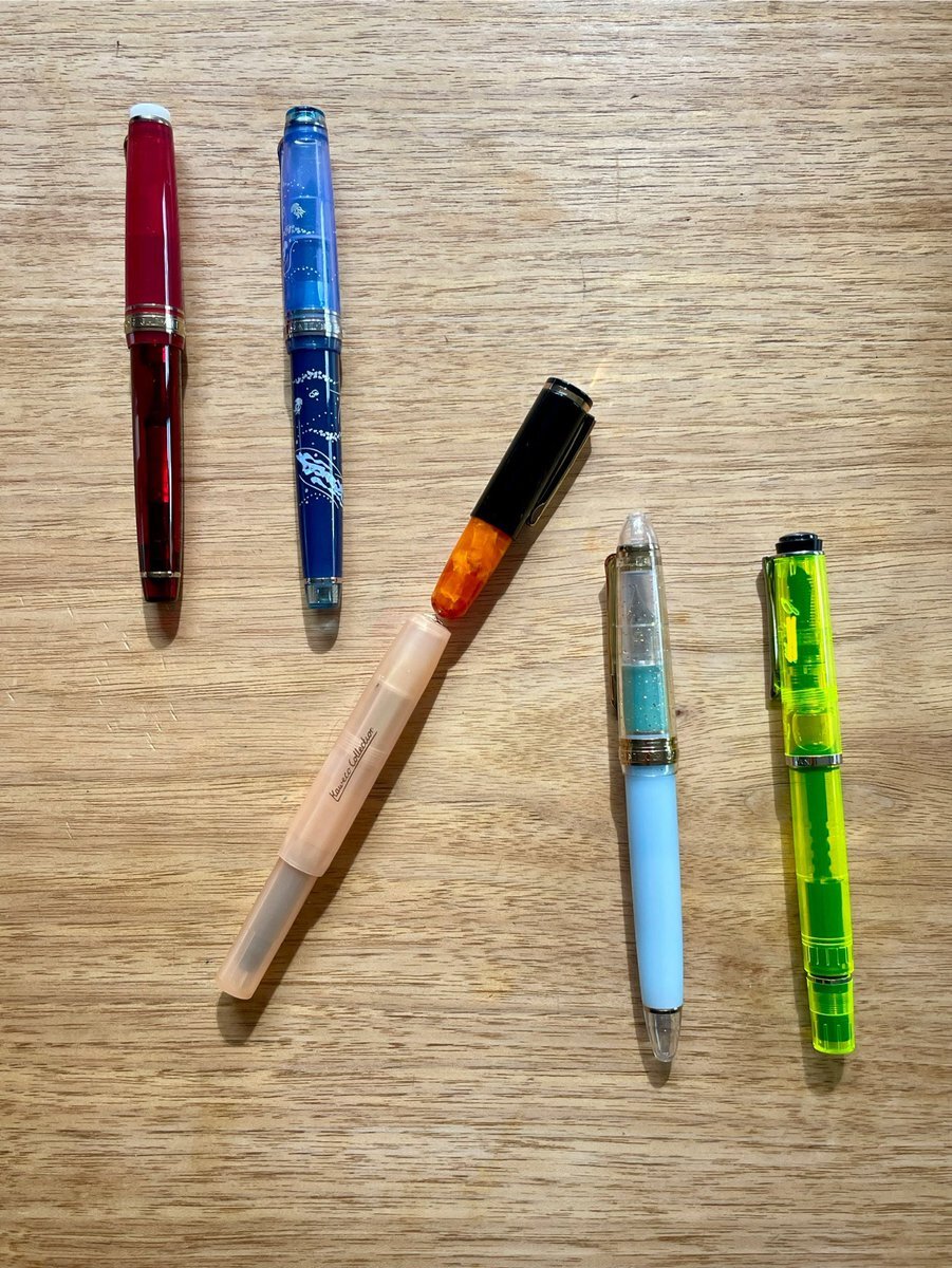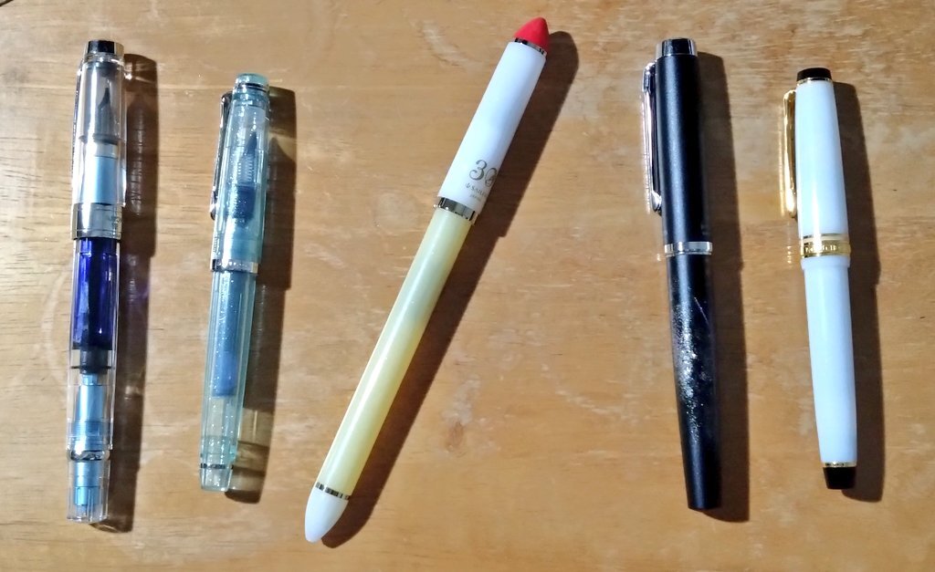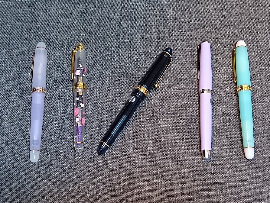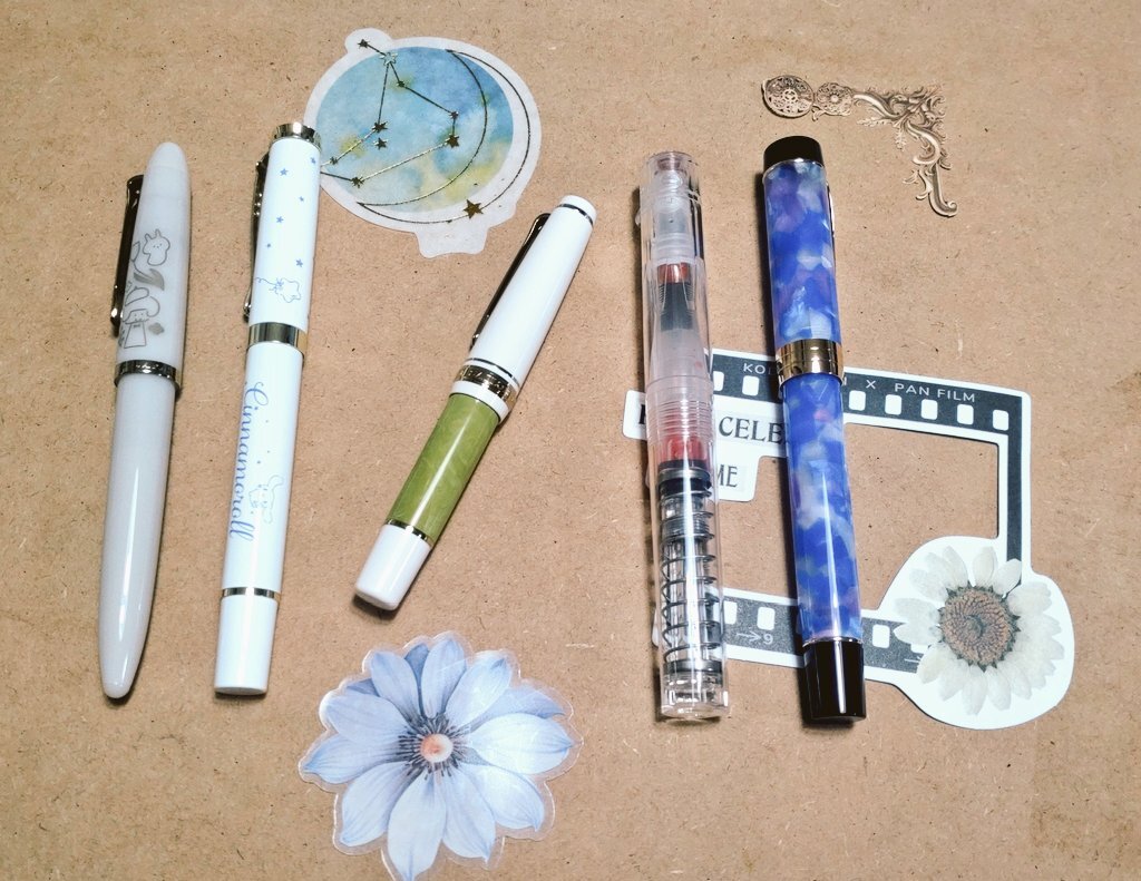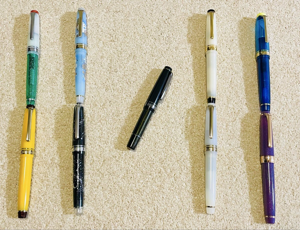 #好きな万年筆で11月11日を作る 滑りこみ! 左から ペリカン:スーベレーンM405 セーラー:プロギアスリム かぐや姫 セーラー:プロギアスリムミニ the witch プラチナ:センチュリー WAGNER 2025 Azure Dragon パイロット:CUSTOM URUSHI pic.x.com/zQytqqbdFZ