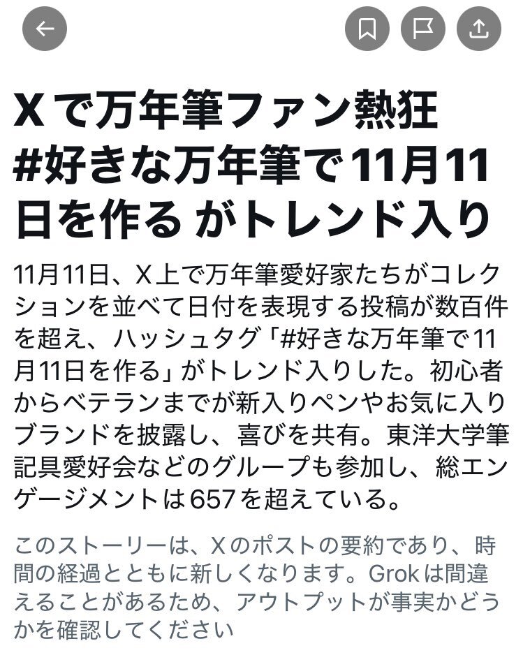 羨望だったり嫉妬だったりマウントだったりさまざまもあるけれど、 #好きな万年筆で11月11日を作る ハッシュタグ良いんだよなあ〜 ただ一点よろしくないのは、このハッシュタグのせいで、忘年筆購入の触手が抑えが効かなくなるということ! ええ!もう買いませんよ買えませんっ!欲しがるけれど藁藁 pic.x.com/E1stGAO4g3