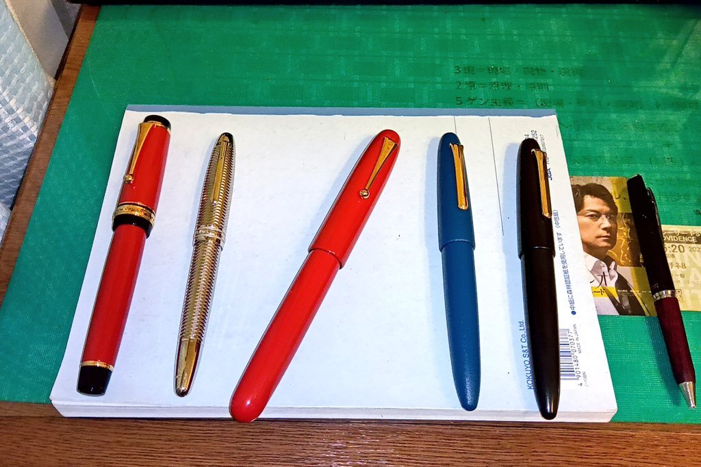 #好きな万年筆で11月11日を作る 左から 絣<F> M800<M> 845<B> 低重心<B> スリム<M> やっぱりぬらぬら書けるのが好きだなー