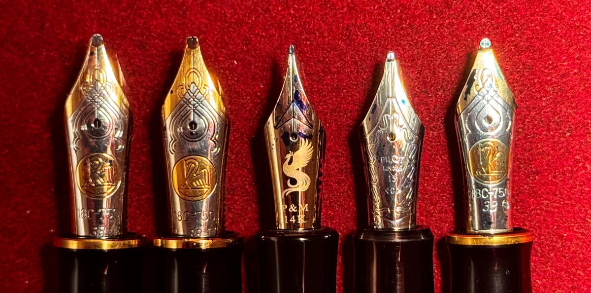 なんとか間に合ったー! これがフトジスキーの「11月11日」だ!! 左から ・M1000 3B(フルハルター) ・M1000 3B(金ペン堂) ・Pen and message.CCI1985(TAKUさん3層ニブver) ・カスタム823 C (フルハルター) ・M800 3B(フルハルター #好きな万年筆で11月11日を作る #万年筆沼 pic.x.com/3hjobWMjEW