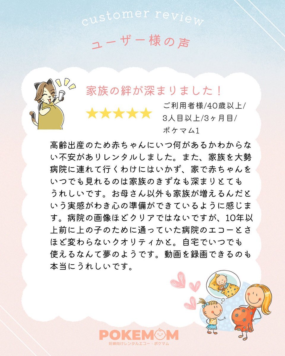 ポケマムホームページに届いた お客様の声をご紹介します✨ 家族みんなで赤ちゃんの様子が見れたり 録画もできるので、いつでも見返すことができます☺️💕 #ポケマム #レンタルエコー #妊娠 pic.x.com/qjEy00r3HN