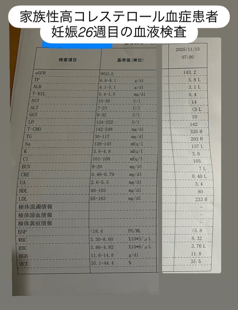 家族性高コレステロール血症患者です。現在妊娠27週です 先日の検査入院時に血液検査を実施。予想通りLDL-CとTGが跳ね上がりました🥺 先生達から薬を勧められ、11年前にお世話になったコレスミチドをもう一度トライすることに💪今回は効いてくれると祈って🙏 #家族性高コレステロール血症 #妊婦 #妊娠 pic.x.com/NwRfhnRzO6