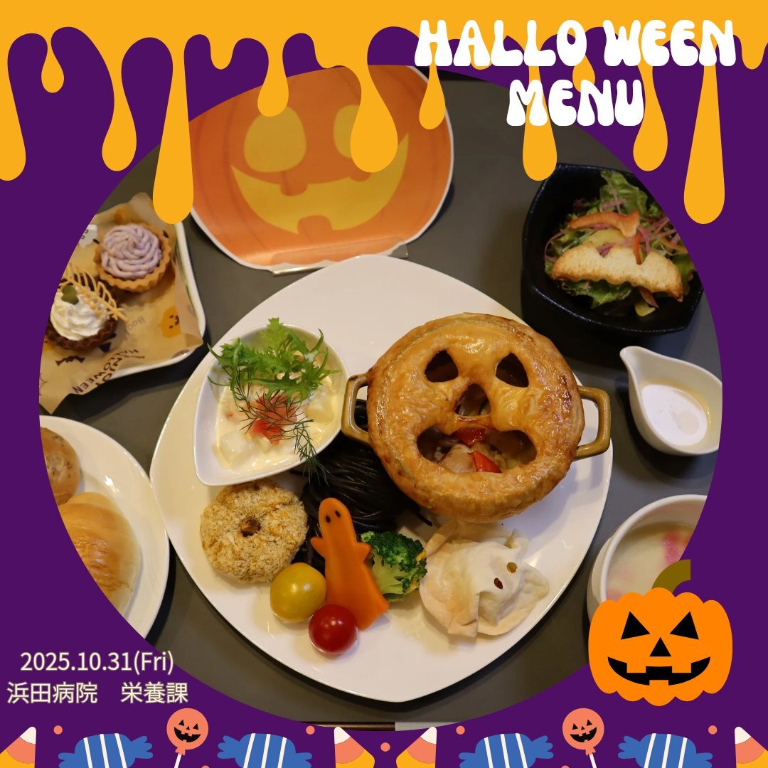 10月の行事食はハロウィンメニューでした🎃💜 ・南瓜のコロッケ ・柿とさつま芋のメランジェ ・ココットチキンパイ ・おばけ南瓜 ・栗のスープ ・パン ・紫芋のモンブラン #浜田病院 #産婦人科ご飯 #産科ごはん #妊娠中の食事 #産後ごはん #行事食 #ハロウィンメニュー #浜田病院栄養課 pic.x.com/OgLojzLRPJ