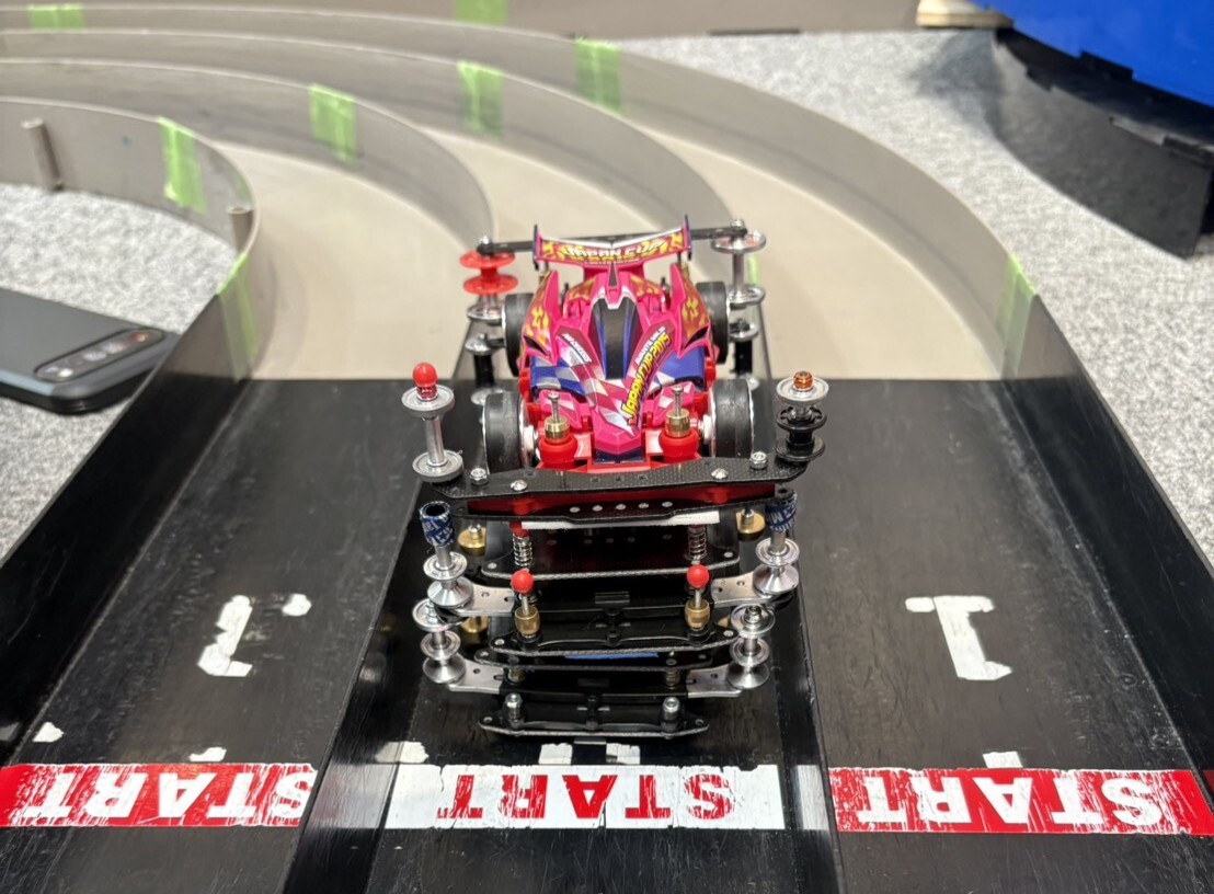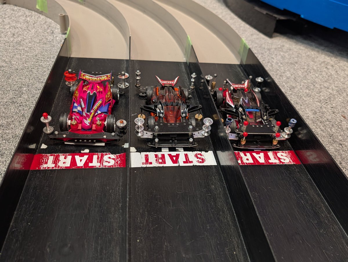 今日のミニ四駆案件です! 同じマシンで誰が一番速いのか!? 昨夜は睡魔にやられ、現場で突貫で組んだけど、 1位を取れて嬉しかったです! #妖怪模活 pic.x.com/Tj1X2VNlqq