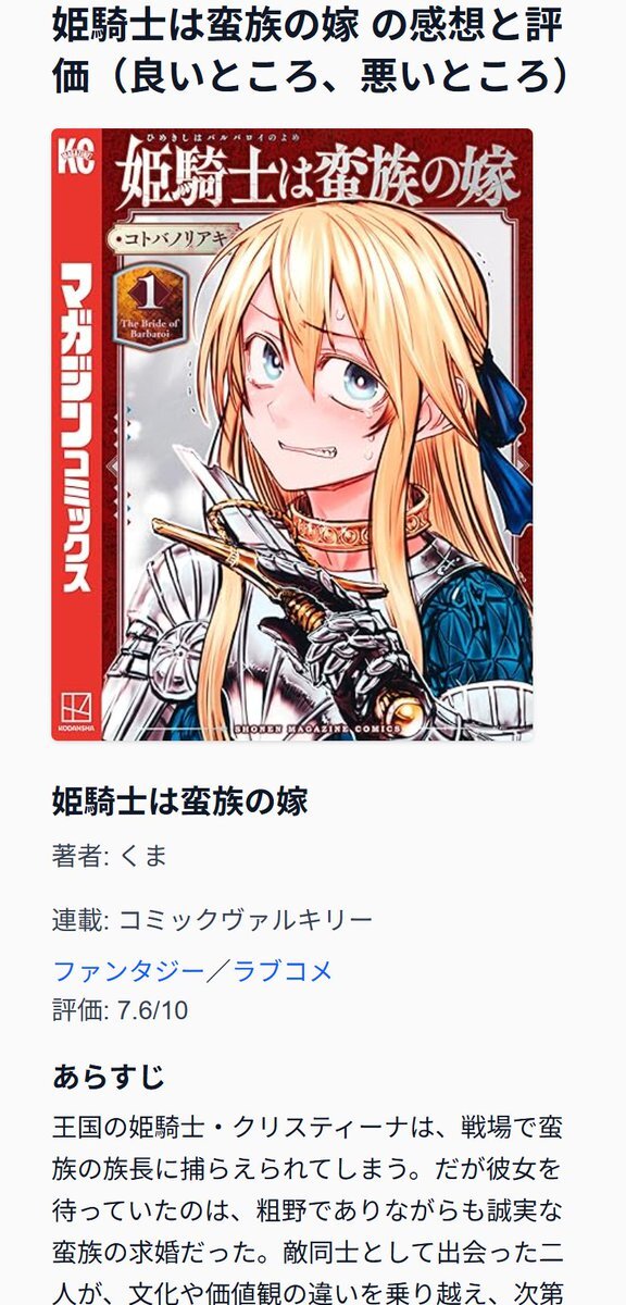 姫騎士は蛮族の嫁 姫騎士が敵の蛮族に嫁ぎ異文化の愛と葛藤に挑むが… 詳細なあらすじや良い点・悪い点をチェック✨ #姫騎士は蛮族の嫁 #コミックヴァルキリー #10巻以上の漫画 mangayoshiashi.com/manga/eae2254f… pic.x.com/0LUsn65FnL