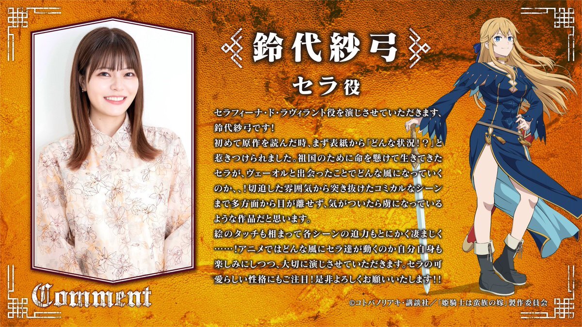 ⚔-------------------⚔ #姫騎士は蛮族の嫁 キャストコメント到着 ⚔-------------------⚔ セラフィーナ #鈴代紗弓 ヴェーオル #猪股慧士 ツェツィ #菱川花菜 マルシアス #豊崎愛生 キャスト解禁PV 🎥youtube.com/watch?v=BHh75V… 2025年秋放送開始! ✅himekishi-anime.com #バルよめ pic.x.com/6X8bzp4f4p