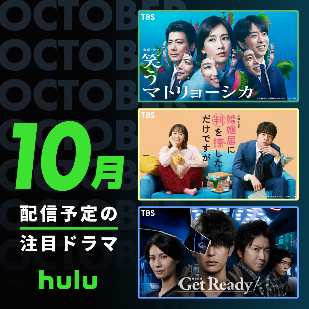 Huluにてまもなく配信スタート📺ˊ˗ #Hulu 10月配信の作品から 注目ドラマをピックアップ✍️ ☑︎#笑うマトリョーシカ🎭  (#水川あさみ #玉山鉄二 #櫻井翔) ☑︎#婚姻届に判を捺しただけですが💕  (#清野菜名 #坂口健太郎) ☑︎#GetReady!💉  (#妻夫木聡 #藤原竜也) etc... pic.x.com/RN6cN2n4Zy