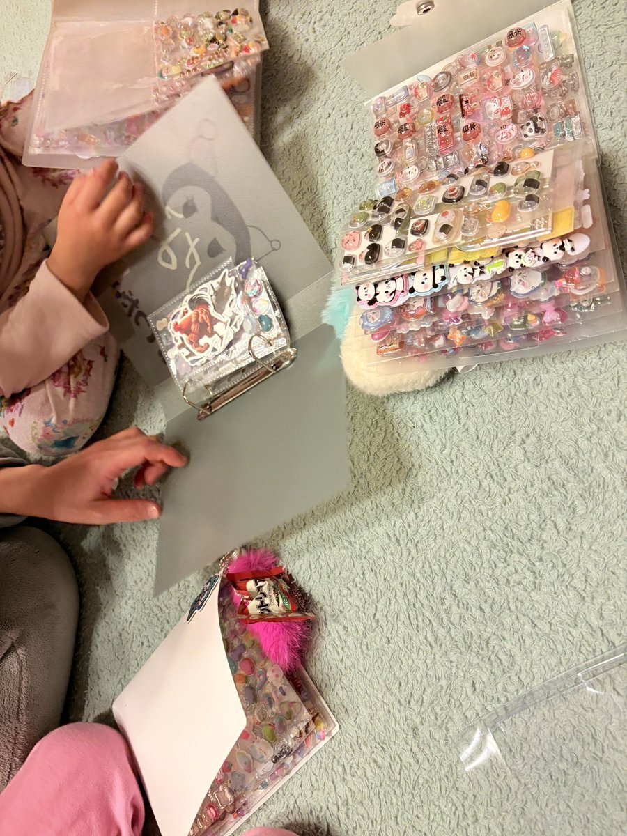 そして帰宅後、 案の定 姉妹でシール交換タイムがスタート✨ 床いっぱいに広げて、 ごっちゃごちゃの大渋滞😂 #シール交換 #姉妹時間 #子どものいる暮らし #ほっこり時間 #シール沼 #小学生の日常 #癒しの時 pic.x.com/FEJgANk3CR