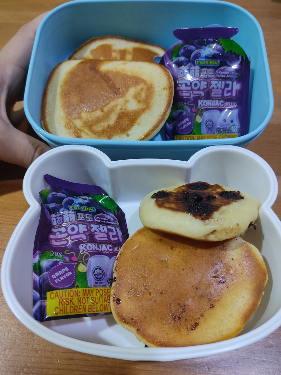 時間と気持ちに少し余裕があったので、子供たちのスナックタイム用にチョコチップ入り パンケーキを焼きました🥞葡萄ゼリー付きです 息子がパンケーキを見て、ミニオンのような歓声をあげ、とても嬉しそうでした。息子の可愛いリアクションに朝から癒されました✨ #マレーシア #子どものいる暮らし pic.x.com/NNc5rMtQHo