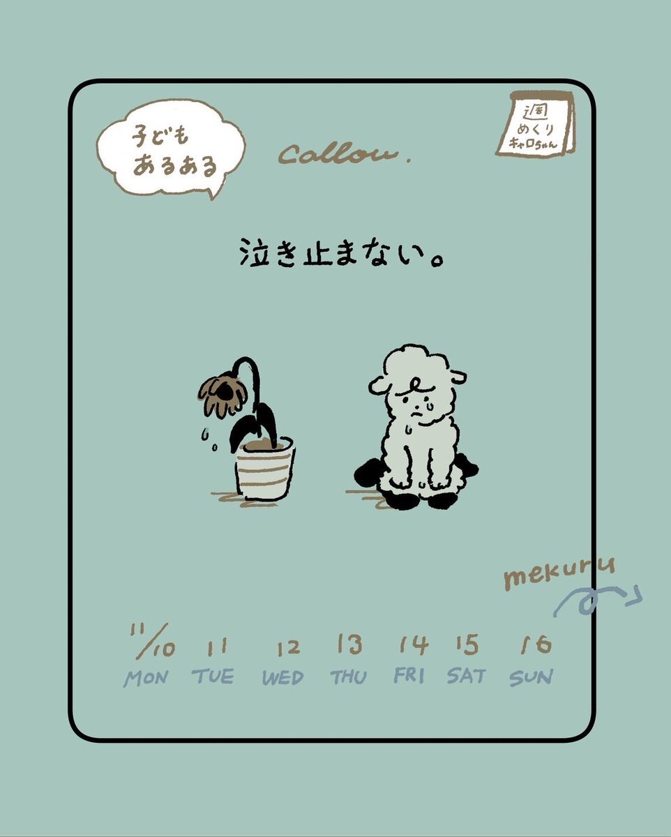 今週の週めくりキャロちゃんは こちら🫱 『泣き止まない。』 心ばかりの文を添えておりますので、 ご覧ください🐑 #カレンダー #週めくり #子どものいる暮らし #子どもとくらす #キャラクター #絵本 #オリジナルキャラクター #キャラクター #オリジナルTシャツ #オリジナルキャラクター pic.x.com/O5vy9PCXkK