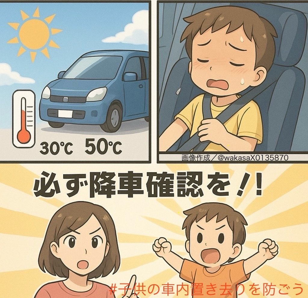 【目視での降車確認】 それが命を守る合言葉‼️ 降車時はお子さんと一緒に🚘🫡✨ #子供の車内置き去りを防ごう x.com/wakasaX0135870…