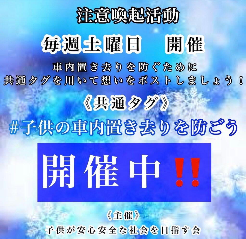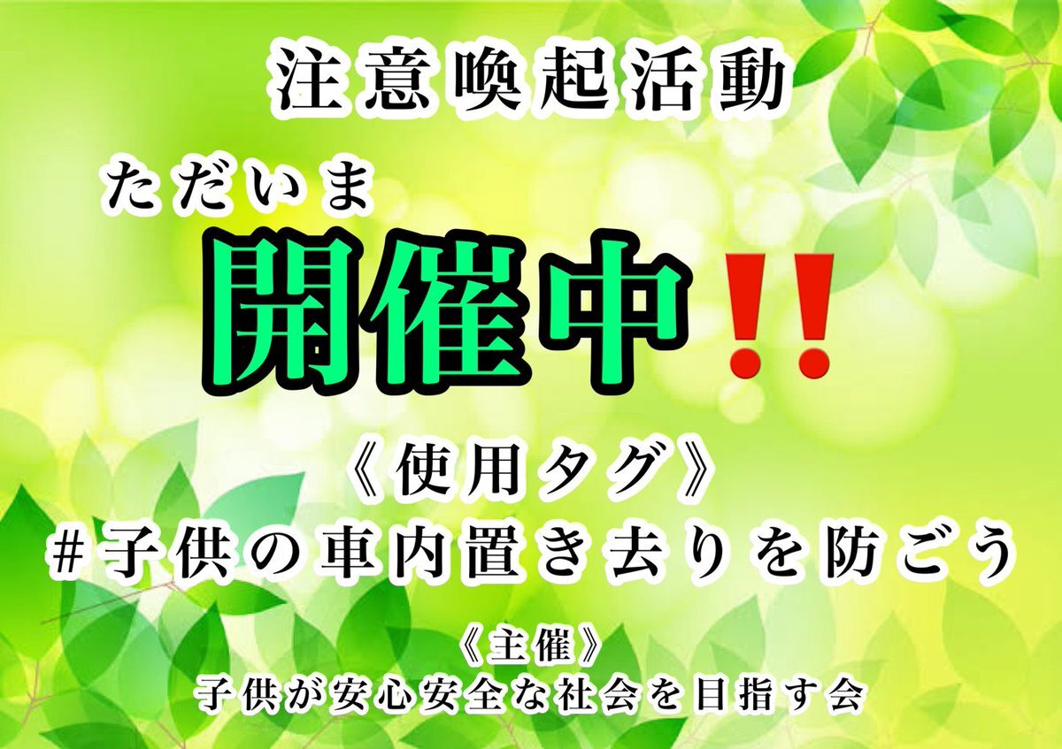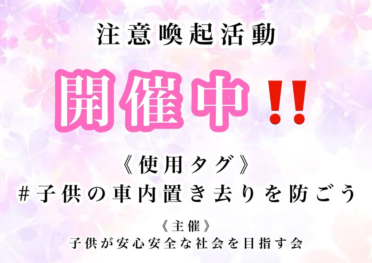 返信先:@tad123473645たっどさん、お疲れ様です☕️ いえいえ、お気になさらず😊 いつも画像を使ってくださり、ありがとうございます🙇‍♀️🌸 その通りです❗️ 子供達の安全を大人みんなで守っていきましょう🫡 いつもありがとうございます(*ᴗ͈ˬᴗ͈)ꕤ*.゚✨ #子供の車内置き去りを防ごう