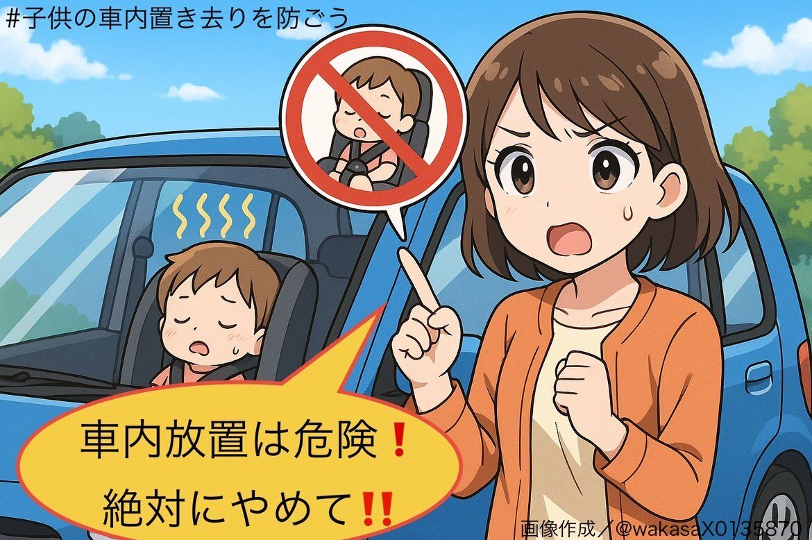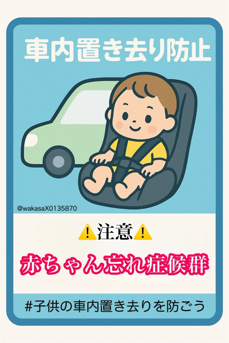 ⚠️車内置き去り注意⚠️ お出かけや買い物の際 「寝ているから」 「すぐ戻るから」は禁物です。 お子さんは自分でドアを開けることも 助けを呼ぶこともできません。 “ほんの少しのつもり”が 取り返しのつかない事故につながります。 必ず降車は一緒に❗️ #子供の車内置き去りを防ごう pic.x.com/rnjhg2dT62 x.com/wakasaX0135870…