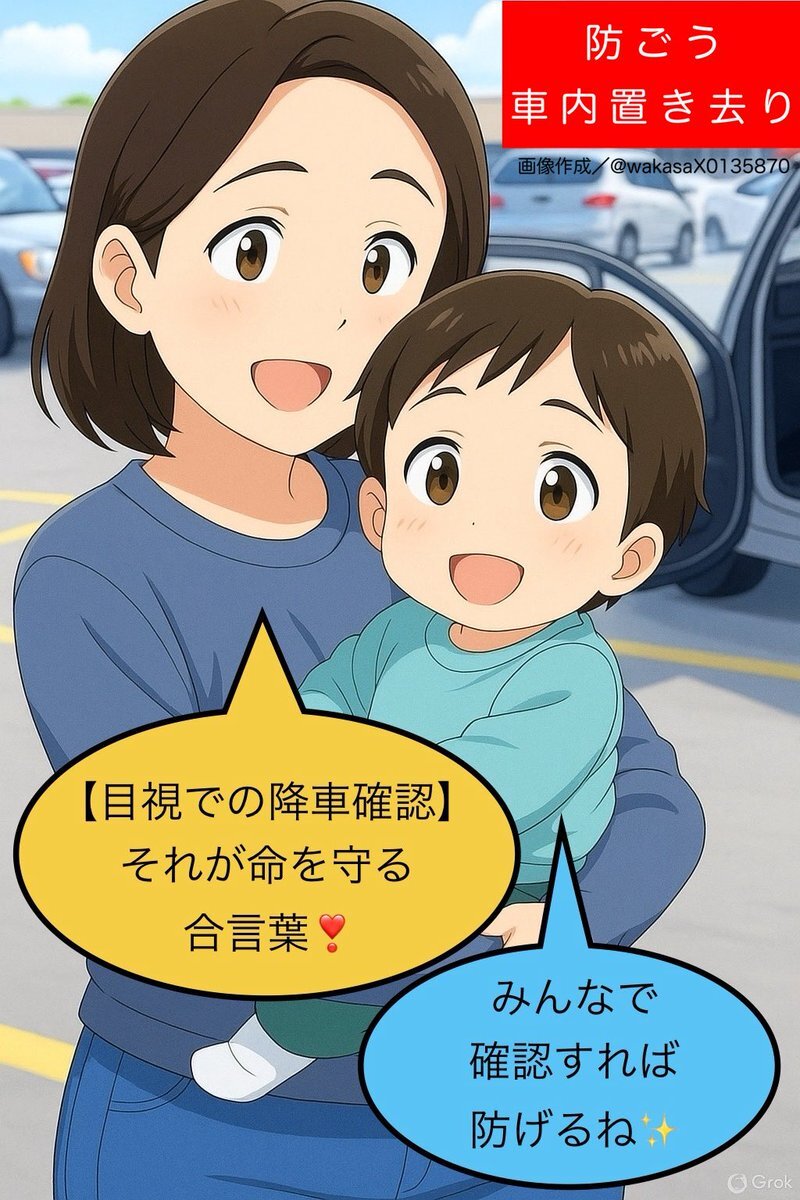【目視での降車確認】 それが命を守る合言葉‼️ 降車時はお子さんと一緒に🚘🫡✨ #子供の車内置き去りを防ごう x.com/gWYwKqROZTddic…