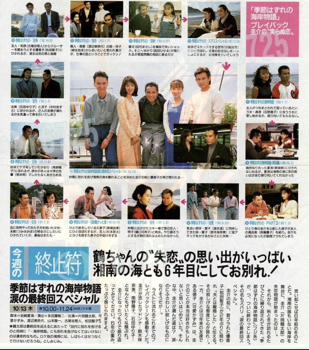 「季節はずれの海岸物語」 片岡鶴太郎主演のドラマです。内容は毎回鶴ちゃんの失恋の話ですが、ユーミンやサザンの曲がバンバン流れてました。今で言う「可愛かずみ推し」です。☺ #季節はずれの海岸物語 pic.x.com/jKuwRdHFpn