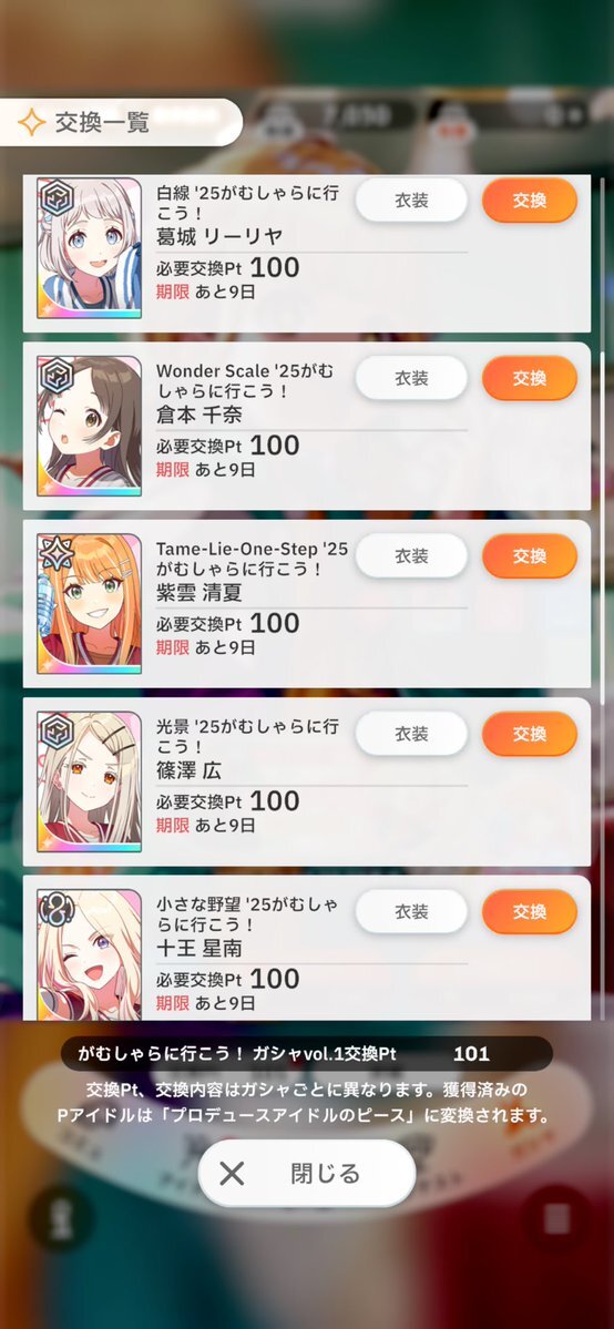 天井で、初めてアナザーのリーリヤを交換できたよ!! ピースが約150個くらいあるから、オリジナル解放もアリかな? #学マス #学マス好きと繋がりたい #学マスプロデューサーさんと繋がりたい pic.x.com/7GOV8FKy2A