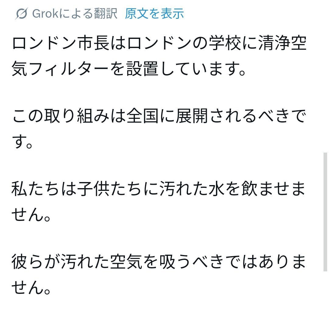 ロンドン市長、素晴らしい👏 世界中の子供達に綺麗な空気で学べる環境を! #感染症から子どもを守れ #学校園に空気清浄機を x.com/_CatintheHat/s…