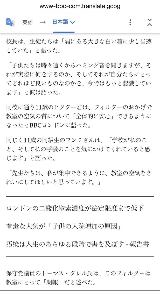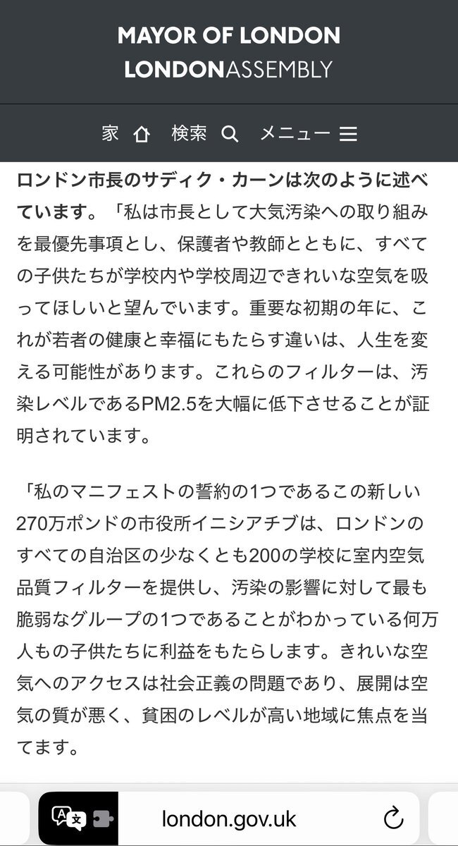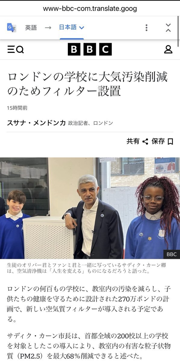 市長サディク・カーン氏 「発達の大切な時期に、空気の質がもたらす差は人生を変え得ます これらのフィルターは、主要な汚染物質のPM2.5を大幅に低下させることが示されています」 機械翻訳 www-london-gov-uk.translate.goog/mayor-invests-… #感染症から子どもを守れ #後遺症あるぞコロナを無視するな #学校園に空気清浄機を pic.x.com/1NS8CCItZ9