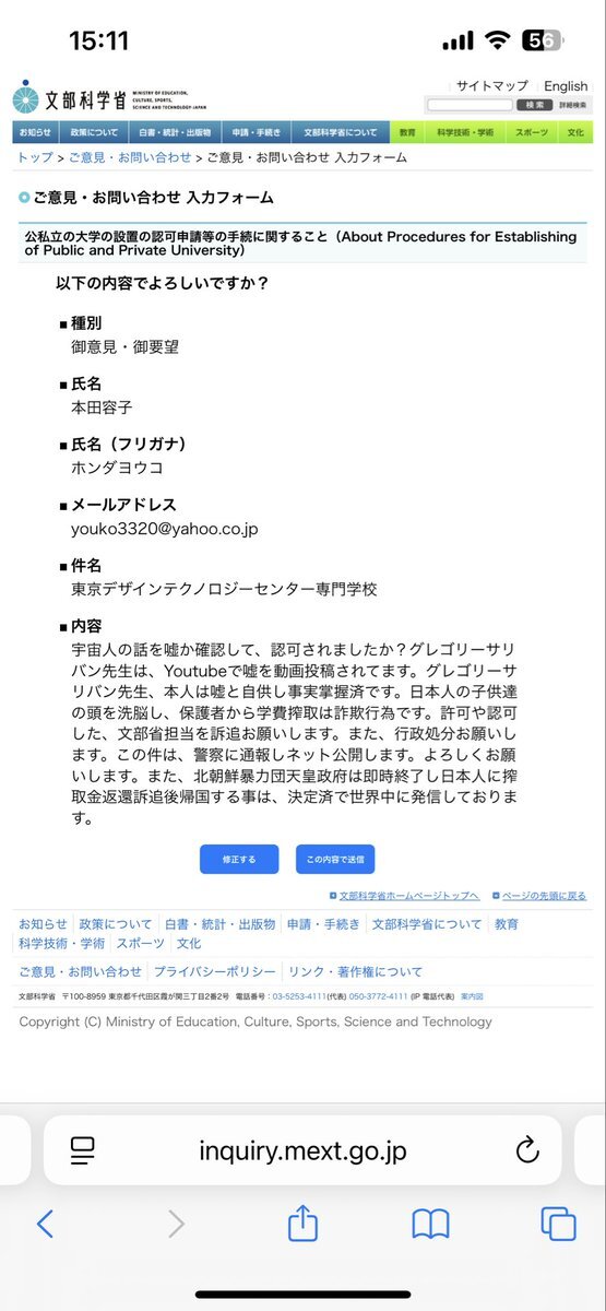 文部省に東京デザインテクノロジーセンター専門学校を、通報しました。日本人は、ご協力お願い申し上げます🍀 #学校教育 #文部省 #東京デザインテクノロジーセンター専門学校 #グレゴリーサリバン #外患罪 pic.x.com/Y9EquXlMsp