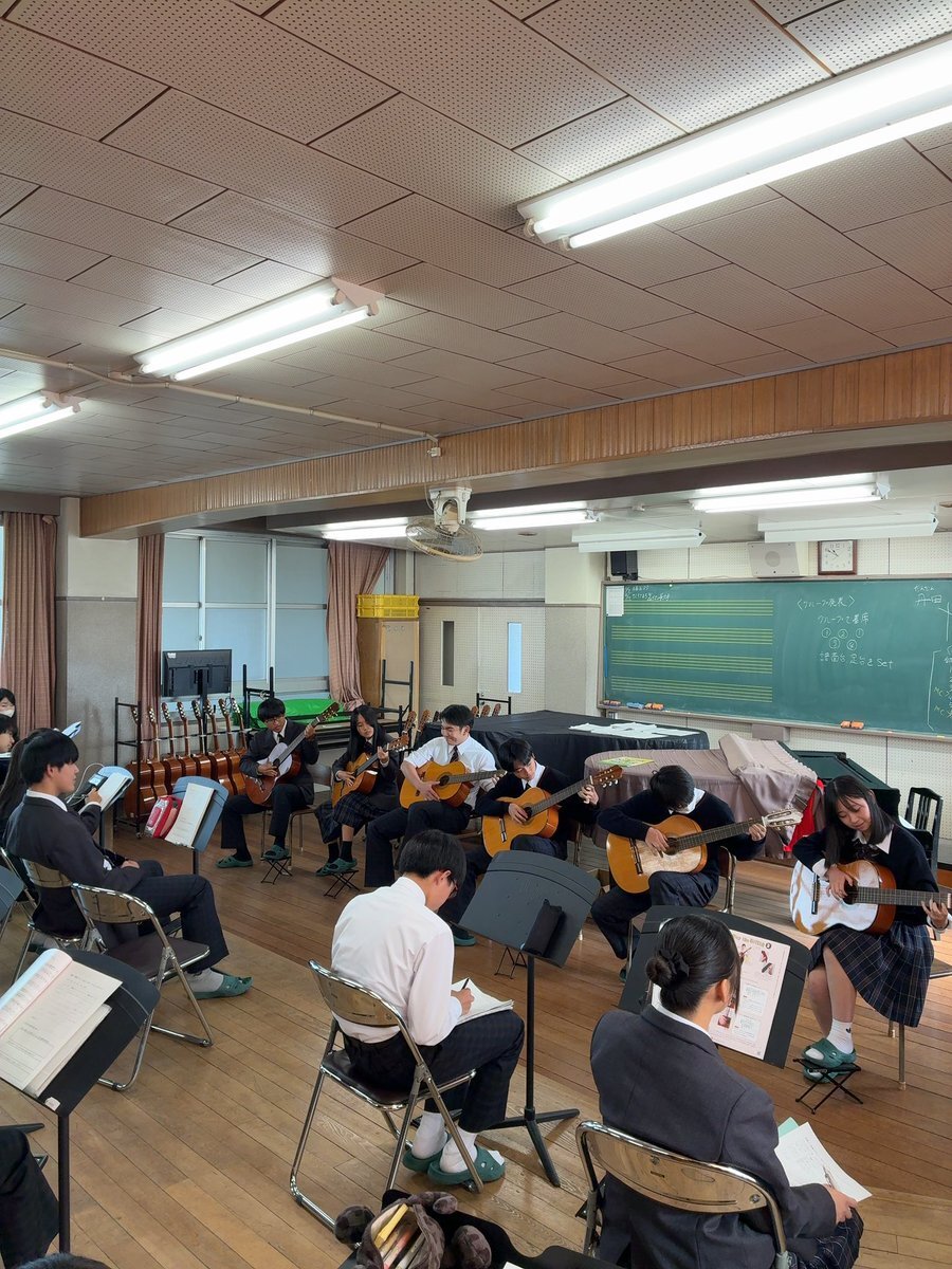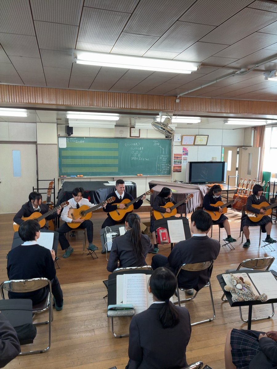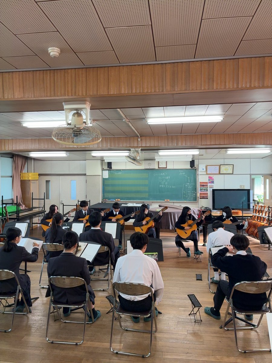ぶらっと北高1382 #学校紹介 #授業紹介 #音楽I 1年生の音楽Iの授業で、クラシックギターによるアンサンブル発表を行いました。 「第三の男」のテーマを3つのパートに分かれて演奏し、仲間と共に音楽を創り上げる喜びを感じながら、どのグループも一生懸命に取り組んでいました! pic.x.com/20P6nXwN44